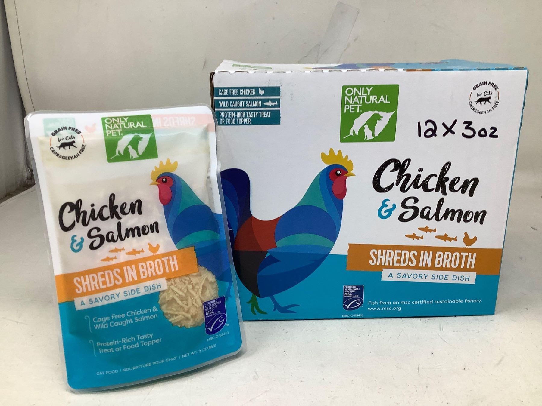 Chicken & Salmon shreds in broth lot of 12 x 3oz cat food