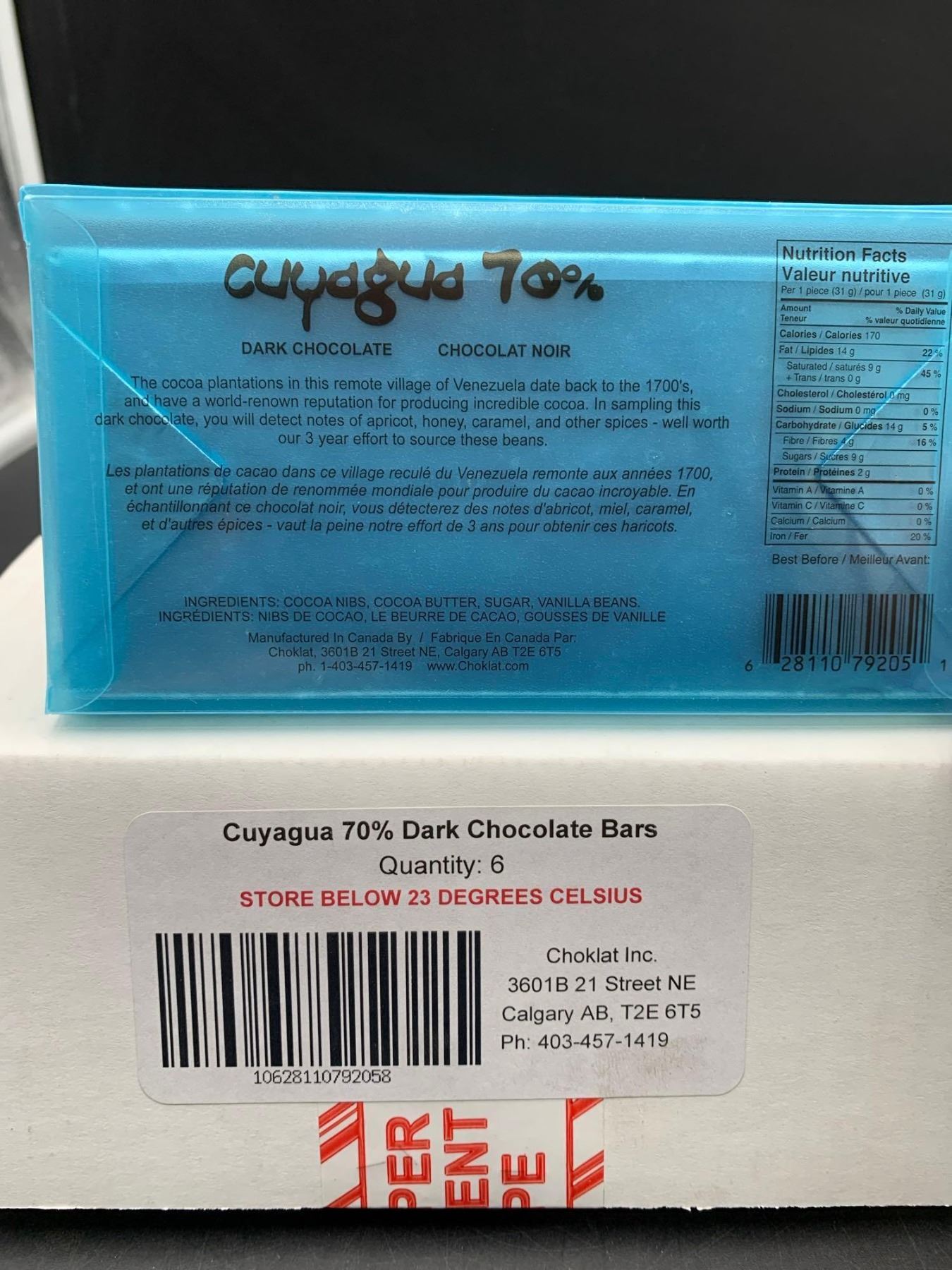 Choklat Cuayagua 70 percent Dark Chocolate Bars (6 x 92g)