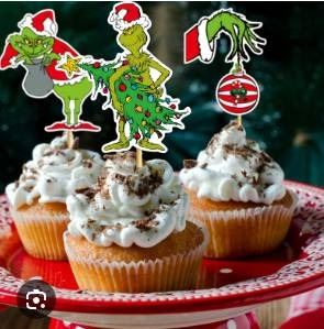 Christmas Grinch Cupcake Decorations with Stand