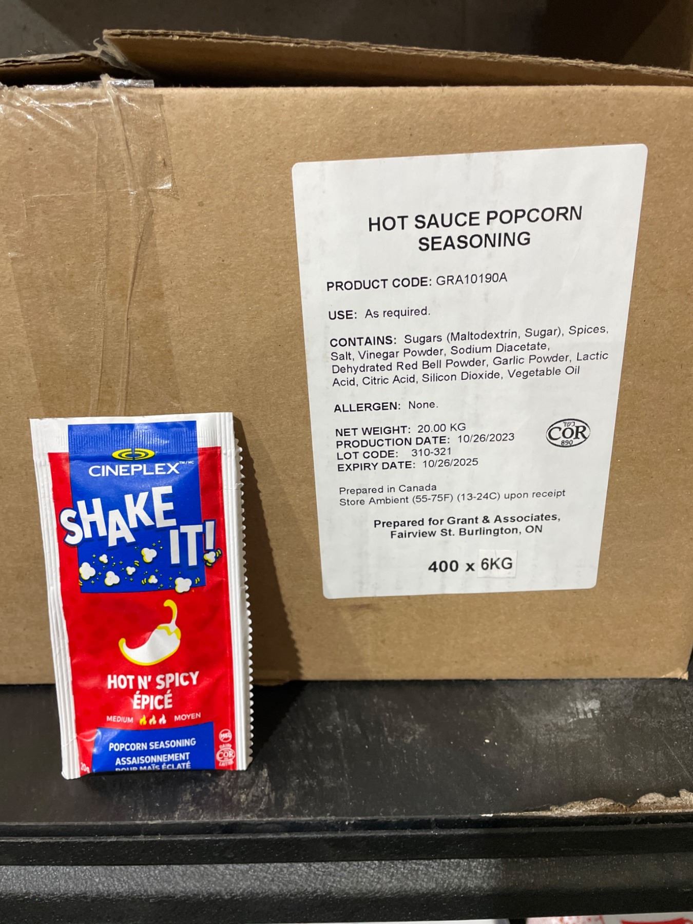 Cineplex Hot Sauce Popcorn Seasoning 400 Units, GRAC-180A