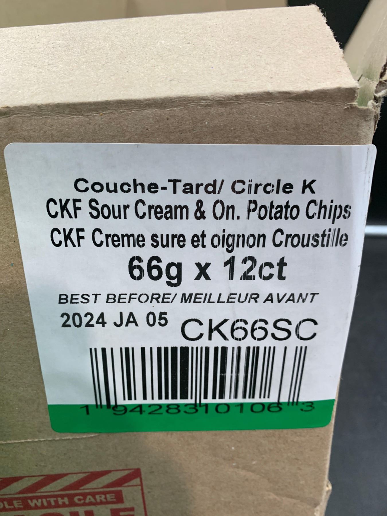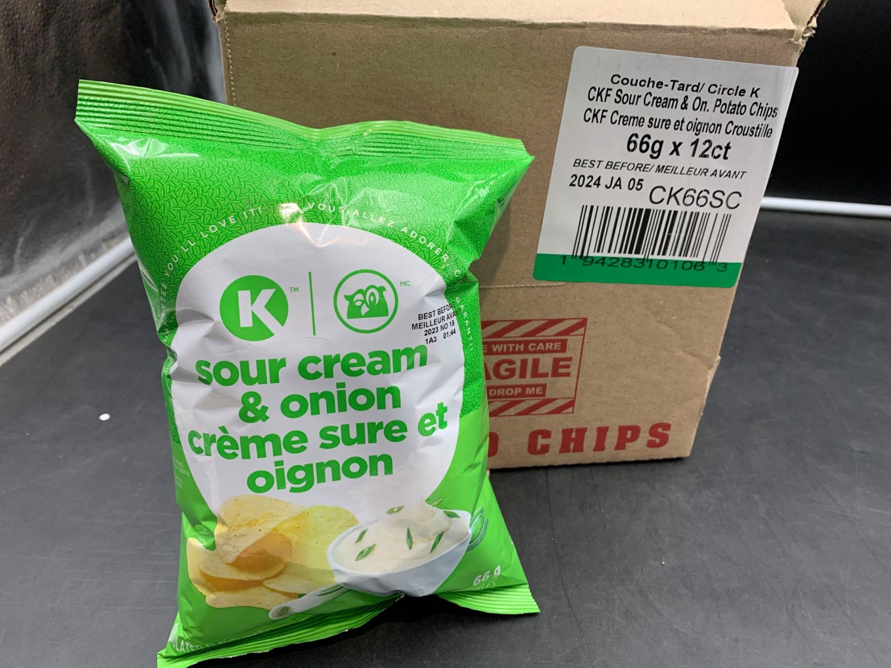 Circle K Sour Cream & Onion Potato Chips (12 x 66g)