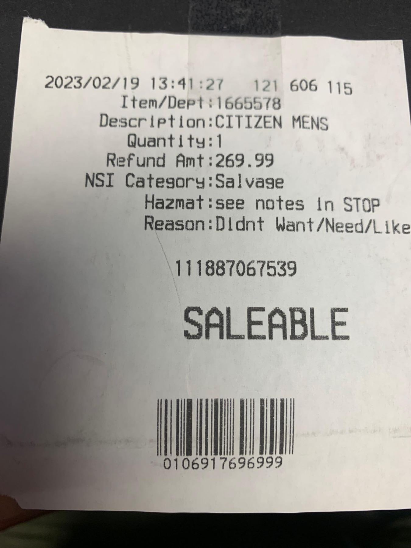 ALL ITEMS NOT PICKED UP WITHIN 10 DAYS WILL BE DISPOSED OF WITHOUT REFUND...NO EXCEPTION