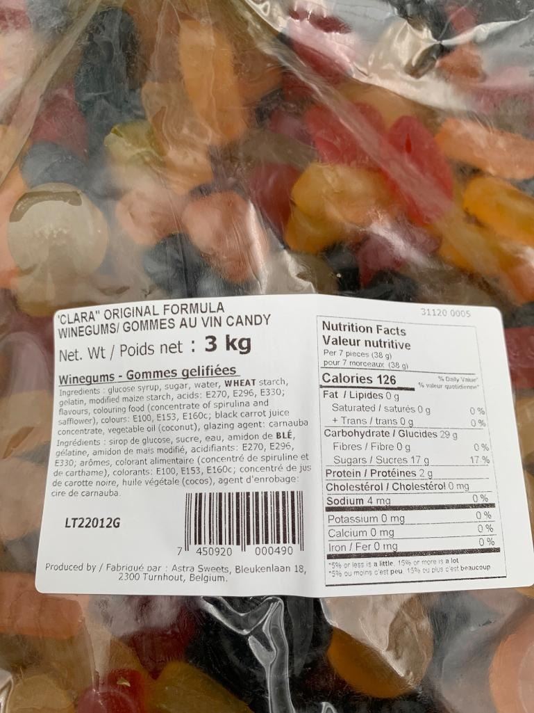 Clara Original Formula Winegums, 3 kg Bag