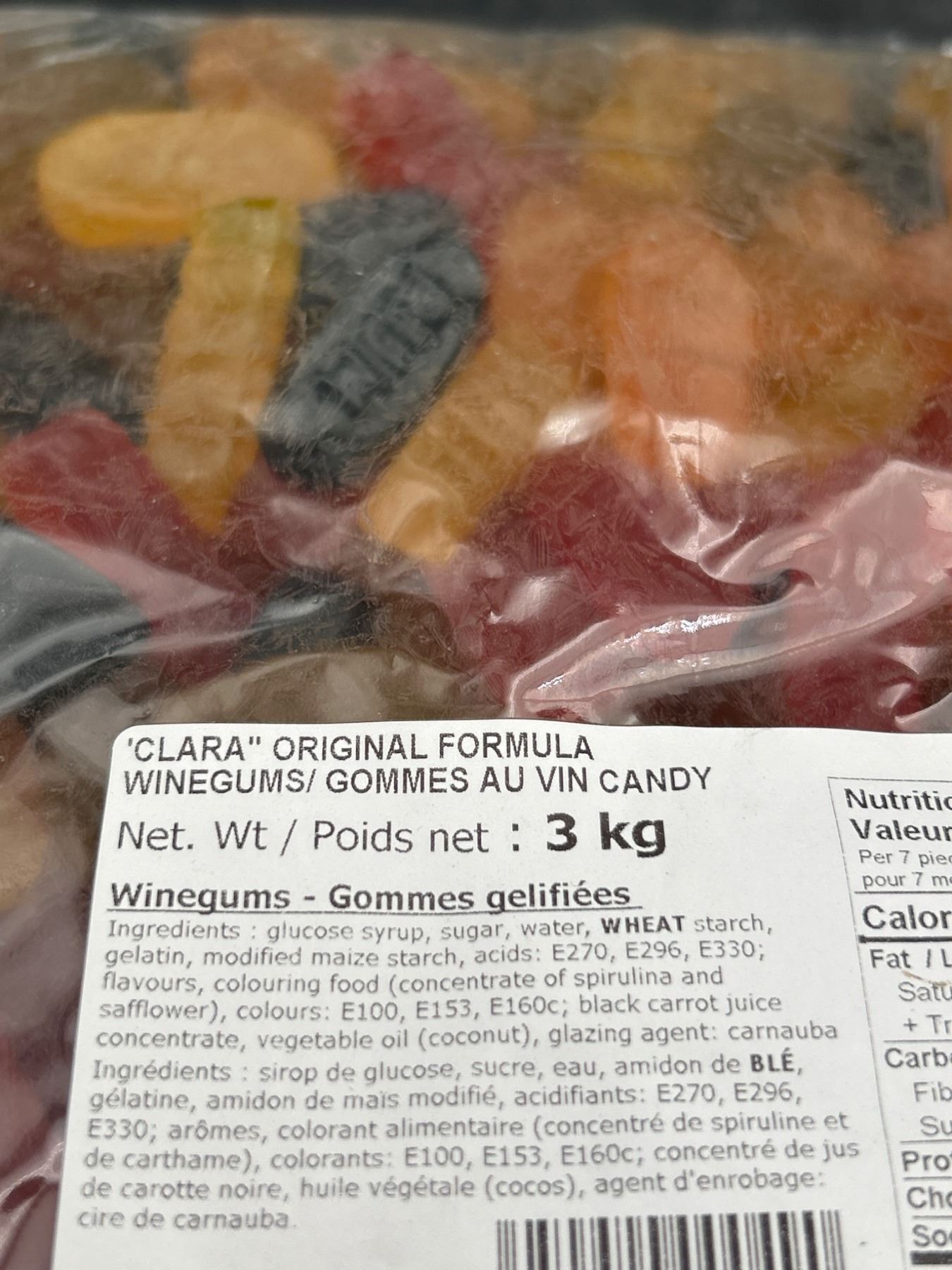 Clara Winegums 3kg Gummy Candy with Ingredients and Net Weight