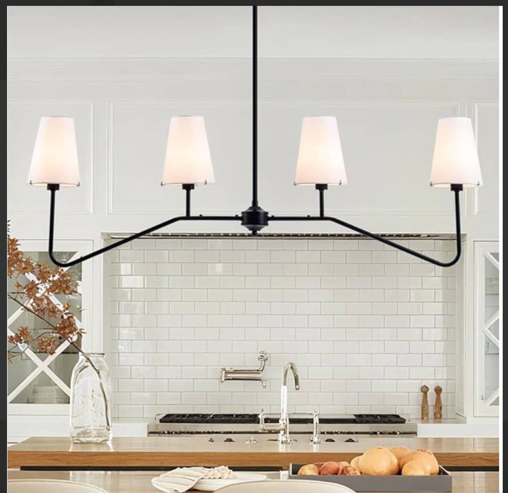 Classic Linear Chandelier Off-White Fabric Modern Kitchen Island Pendant Lighting for Indoor