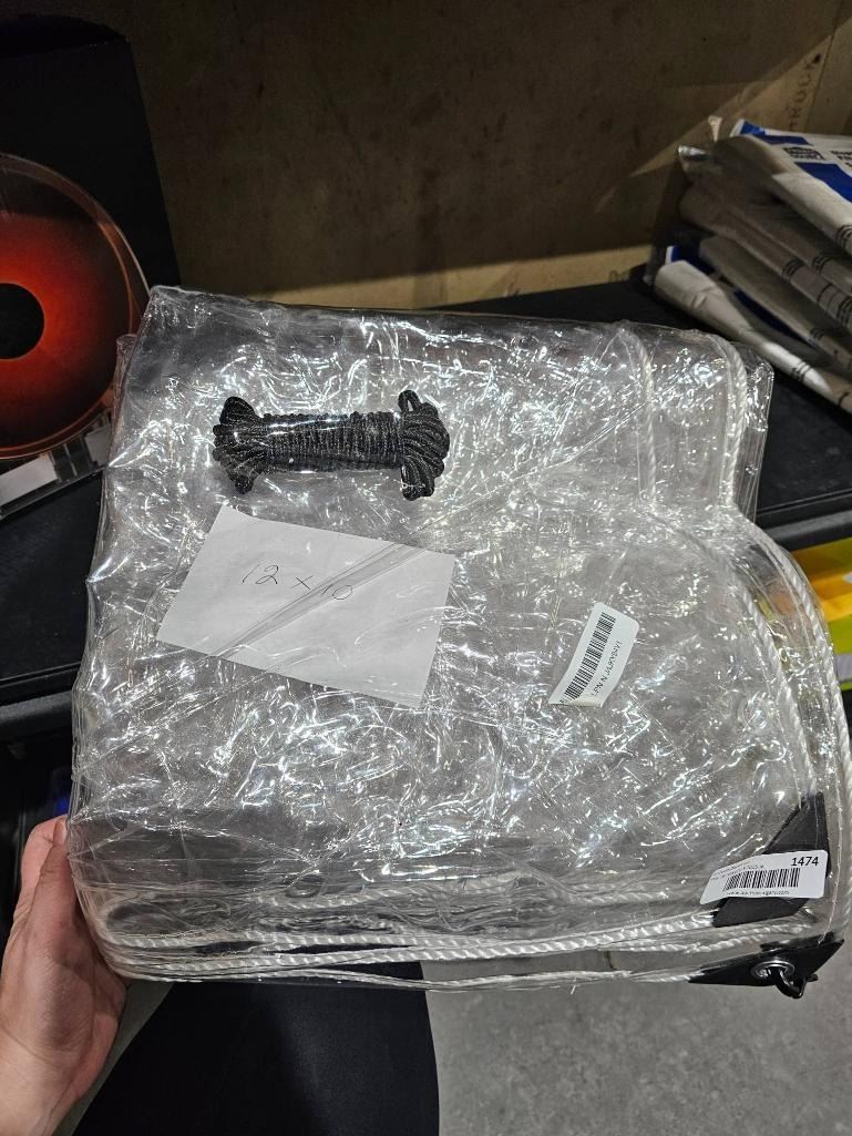 Clear 12×10 Tarp with Grommets and Rope, Approximate Dimensions