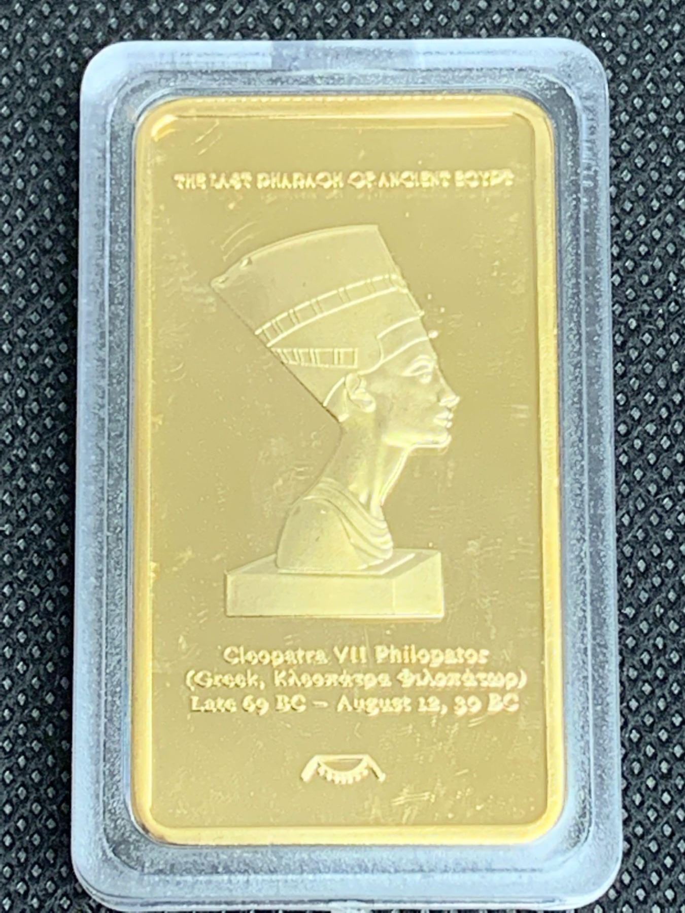 Cleopatra Last Pharaoh one ounce gold plated wafer bar new in case