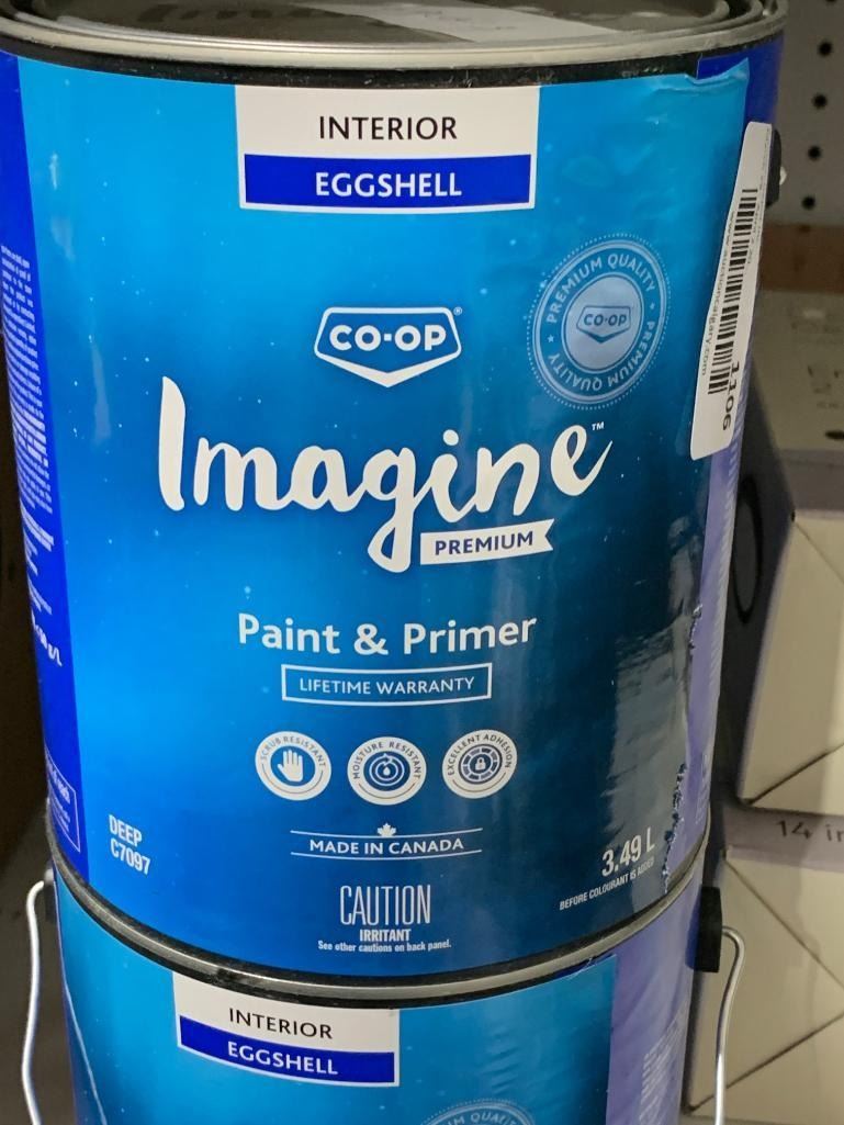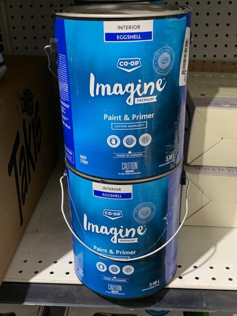 Co-Op Imagine Premium Interior Paint and Primer, Eggshell, 3.49 L, Lot of 2