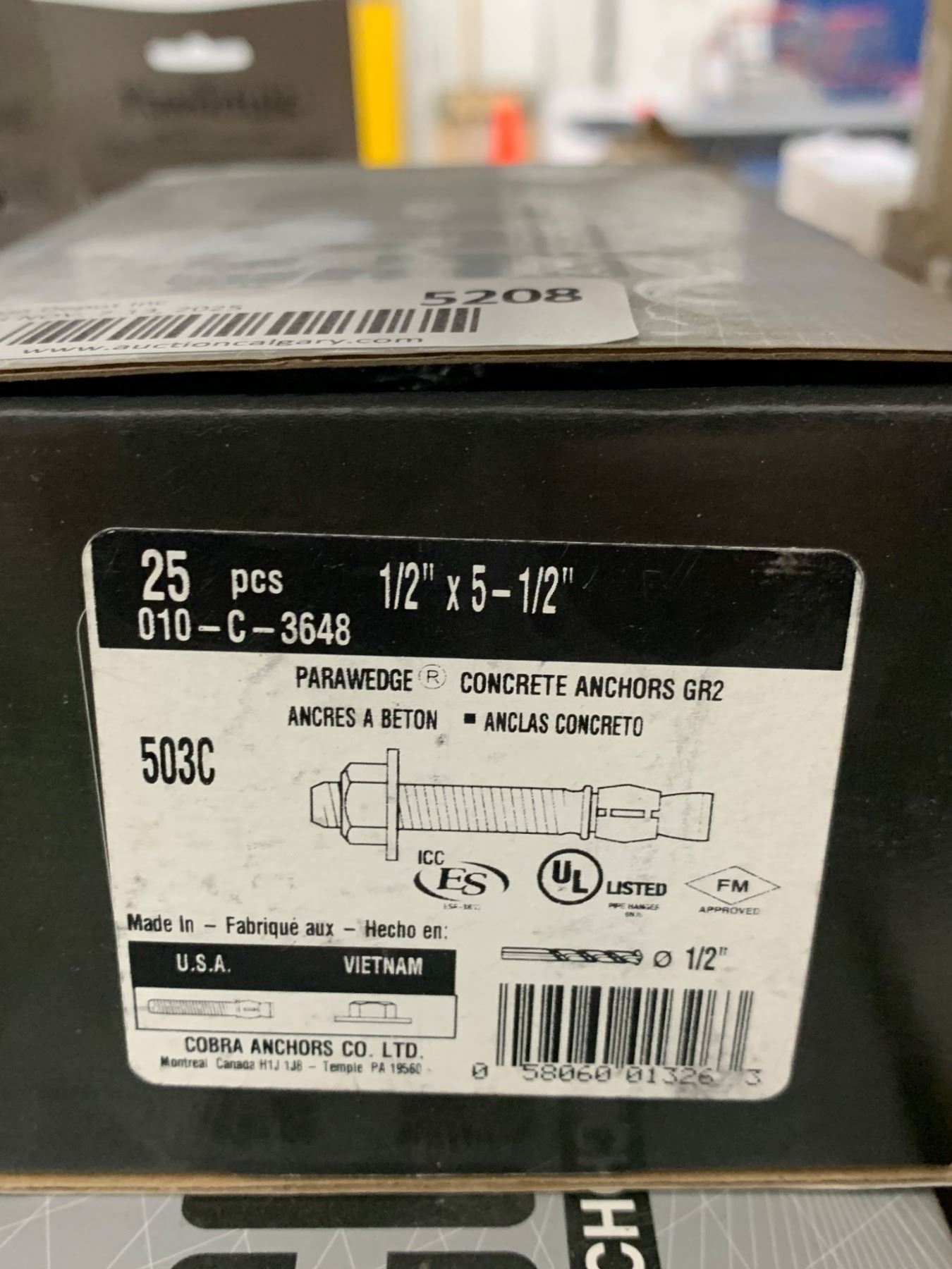 Cobra Anchors Parawedge Concrete Anchors GR2 1/2 Inch x 5-1/2 Inch, 25 Pieces