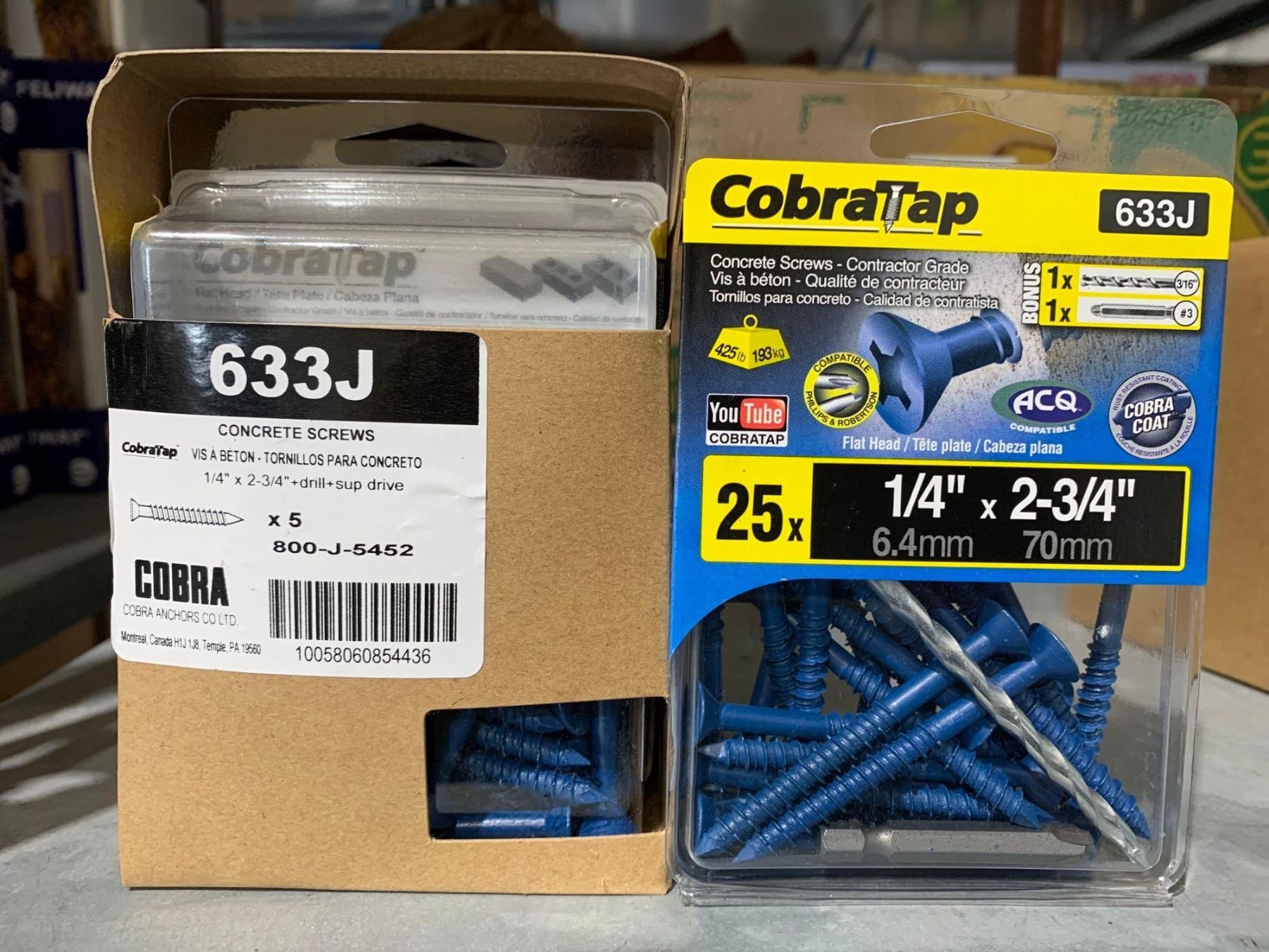 CobraTap Concrete Screws Contractor Grade 25 x 1/4" x 2 3/4" Lot of 5 packs