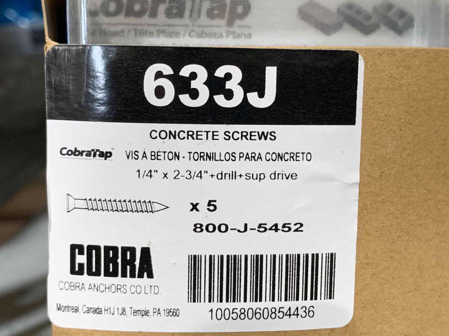 CobraTap Concrete Screws Contractor Grade 25 x 1/4" x 2 3/4" Lot of 5 packs