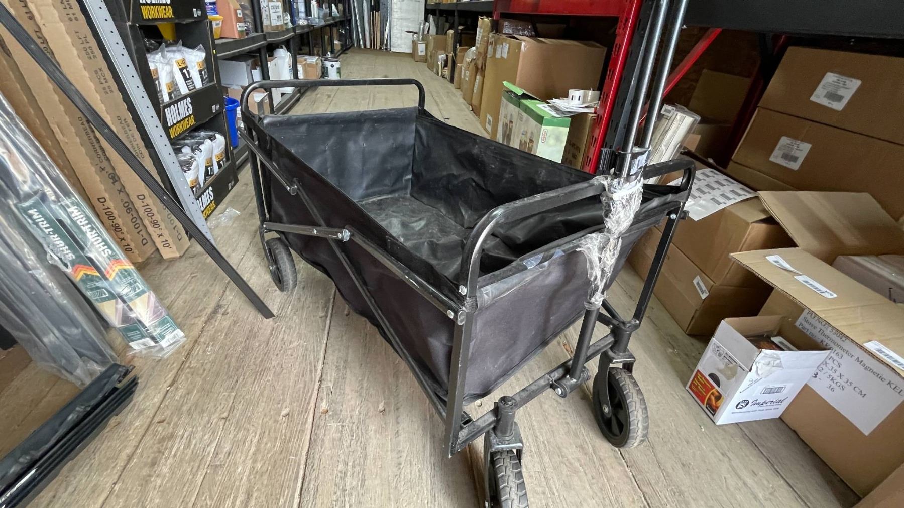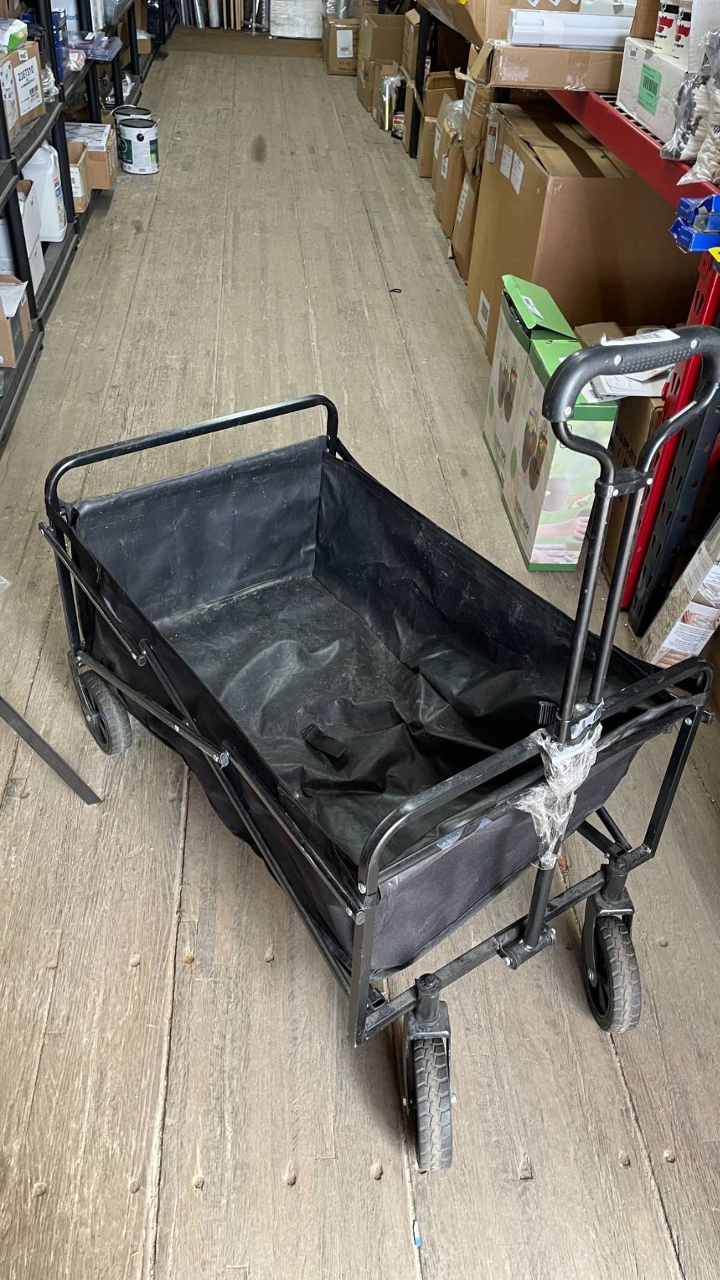 Collapsible Black Utility Wagon with Metal Frame and Fabric Bed