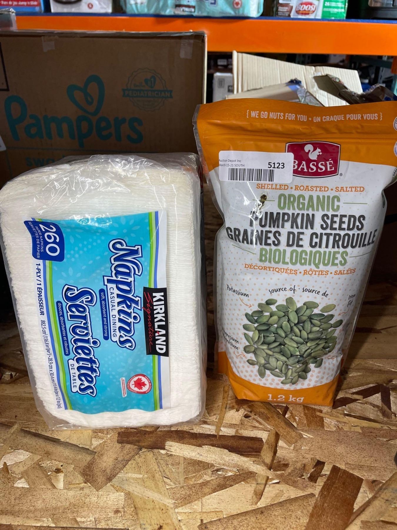 Combo lot of organic pumpkin seeds and kirkland signature napkins