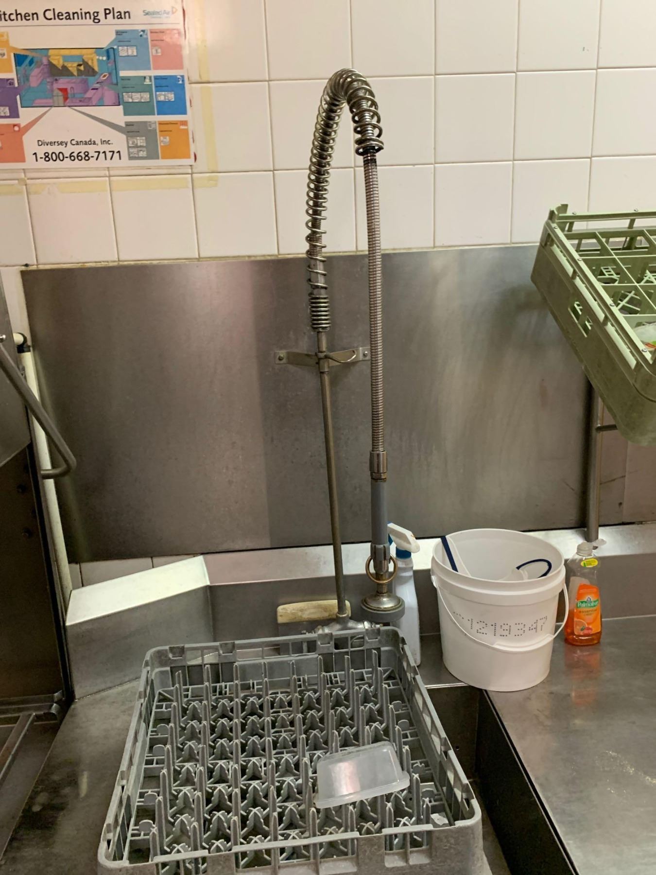 Commercial Dishwashing system with spray station and stainless counters. -THE BUYER IS RESPONSIBLE FOR DISCONNECTION AND REMOVAL - BUYER MUST INSURE ALL DISCONNECTIONS ARE PROFESSIONALLY COMPLETED AND CAPPED