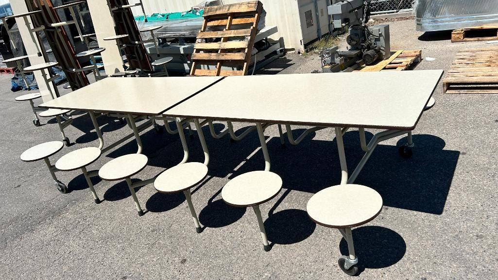 Commercial Lunch Room/Banquet Table - Folding Storable on wheels. Seats 12