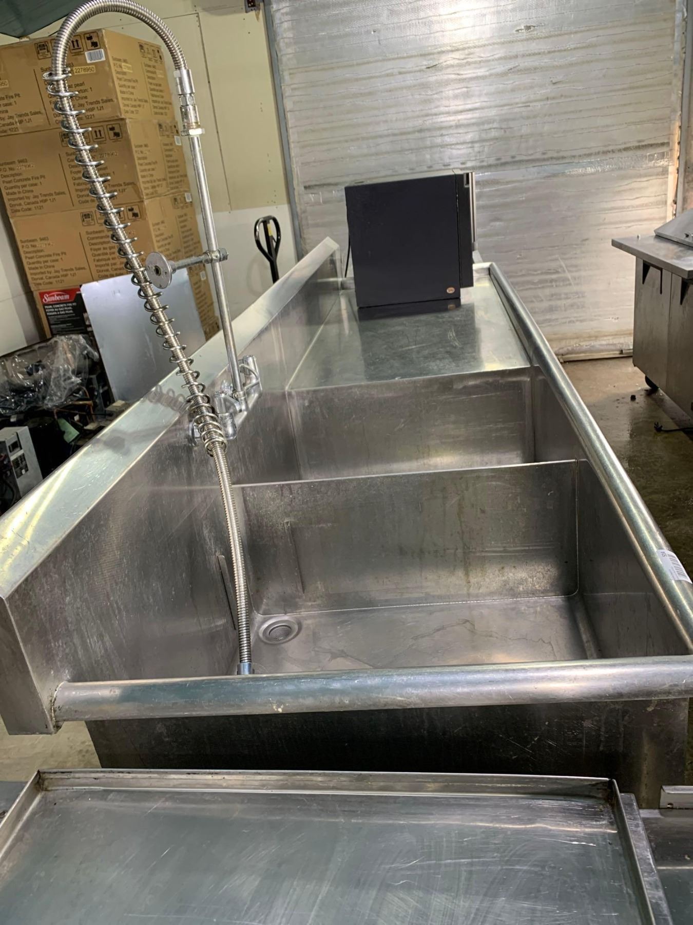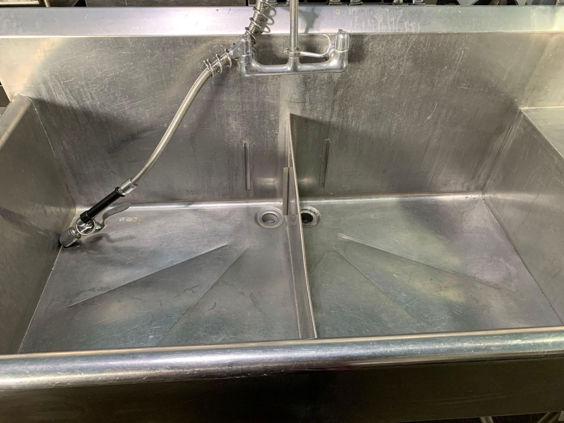 Commercial Stainless Steel Double well sink with run off and flex rinse  faucet