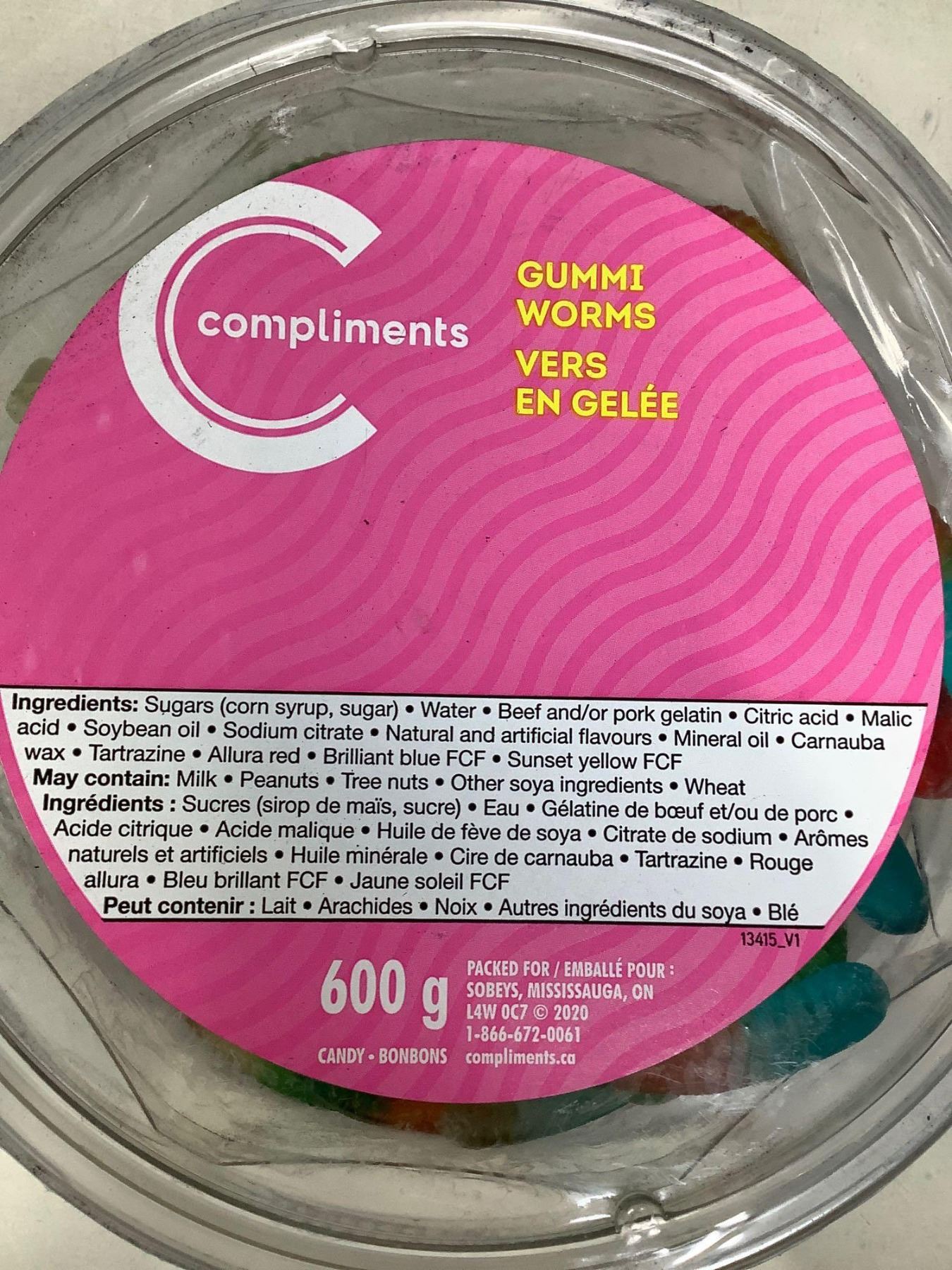 Compliments Gummi Worms lot of 3 x 600g