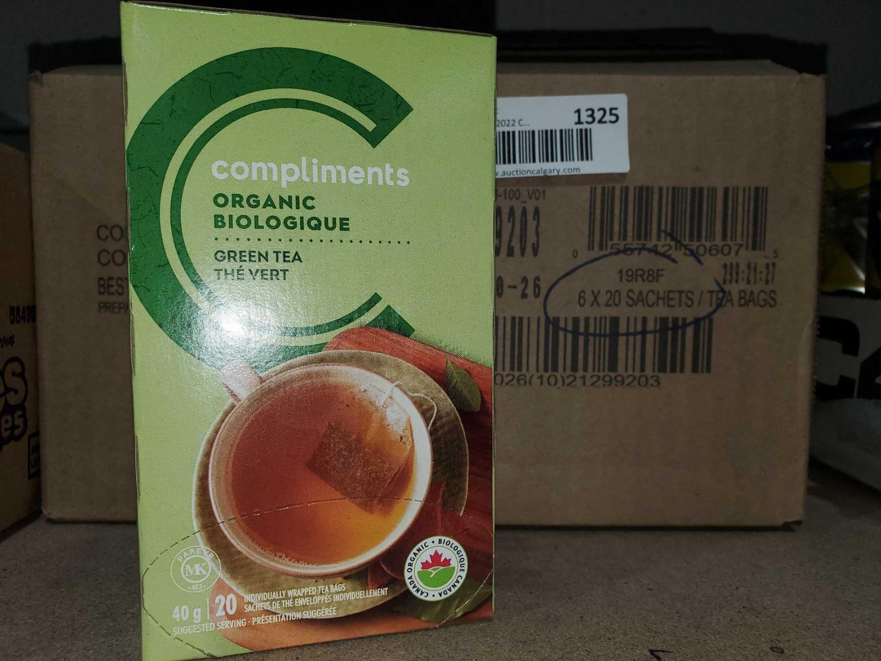Compliments organic Green tea Case lot of 6 x 20 bags