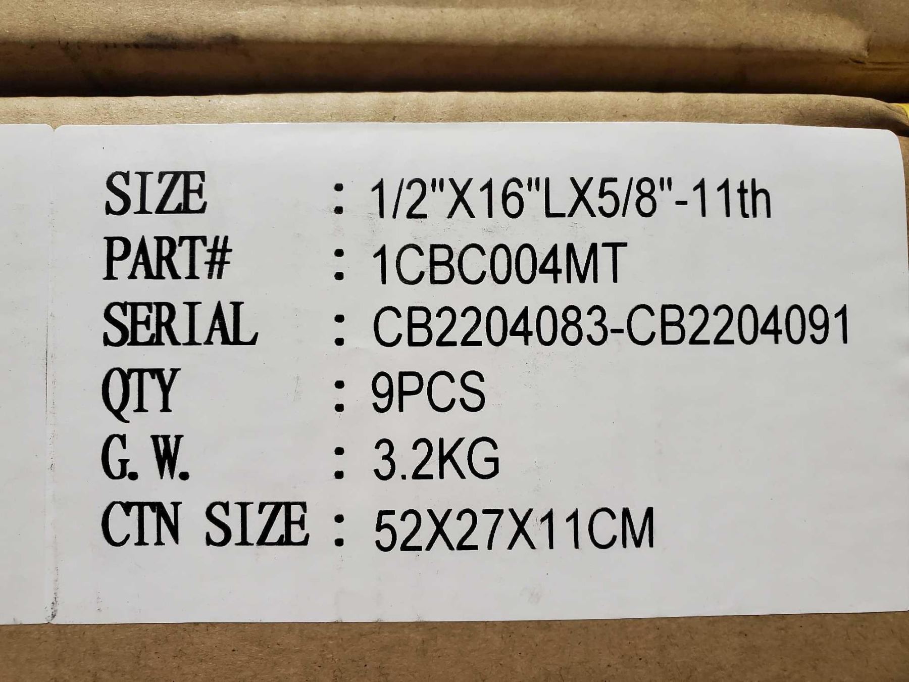 Concrete Cutting Core Bit 1/2"x16LX1x5/8" - 11th- case lot of 12