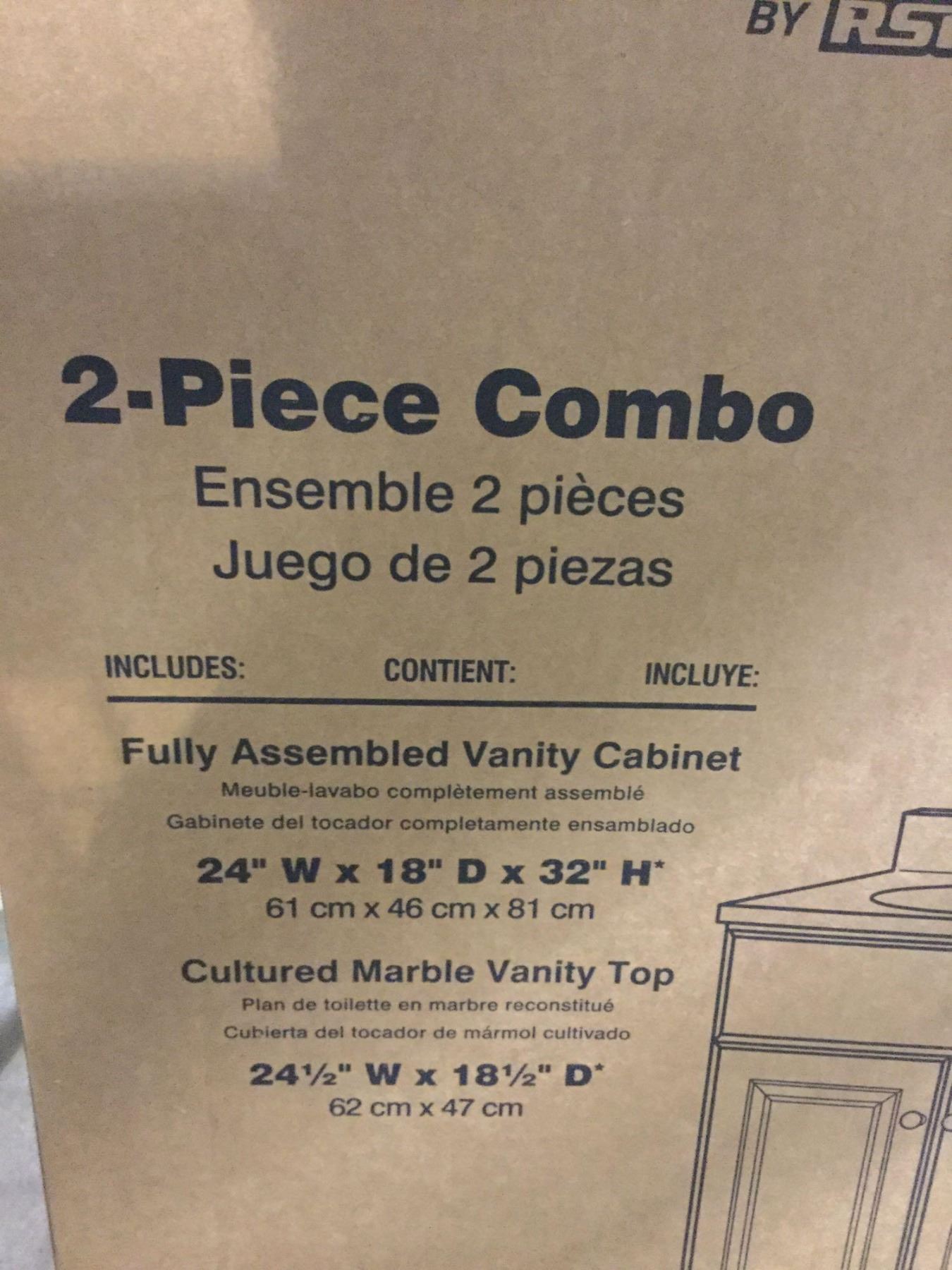 Continental Cabinets - 2-Piece Fully Assembled Vanity Cabinet (24" W x 18" D x 32" H) w/ Cultured Marble Vanity Top (24 1/2" W x 18 1/2" D)