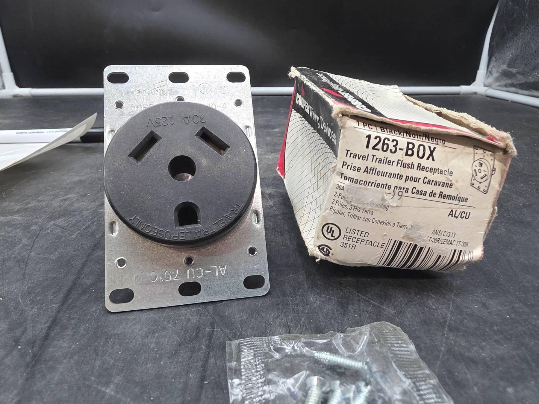 Cooper Wiring Devices 1263-BX Travel Trailer Flush Receptacle, 125/250V, 50A