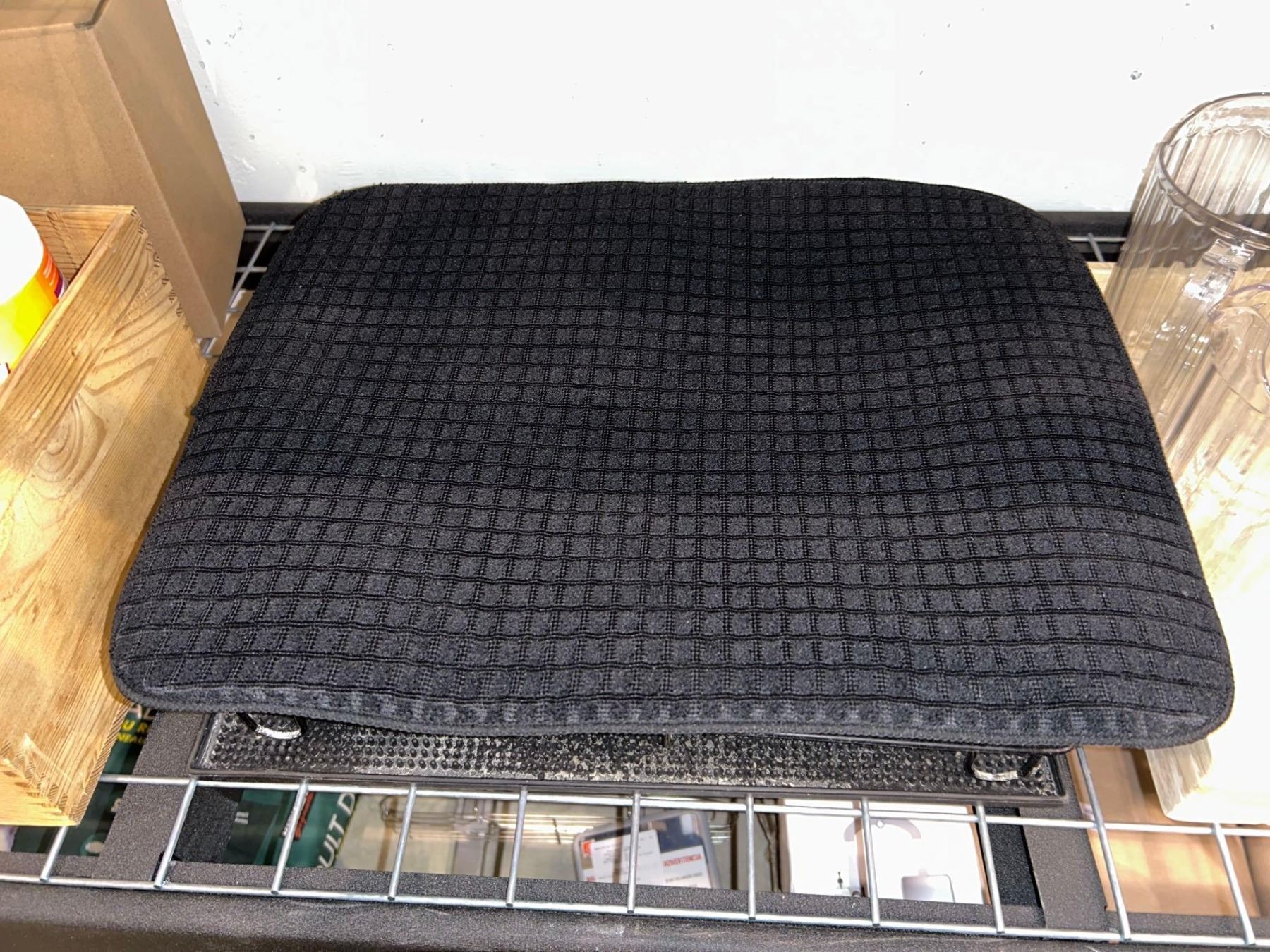 Counter top dish drying rack with water catching and absorbing mats