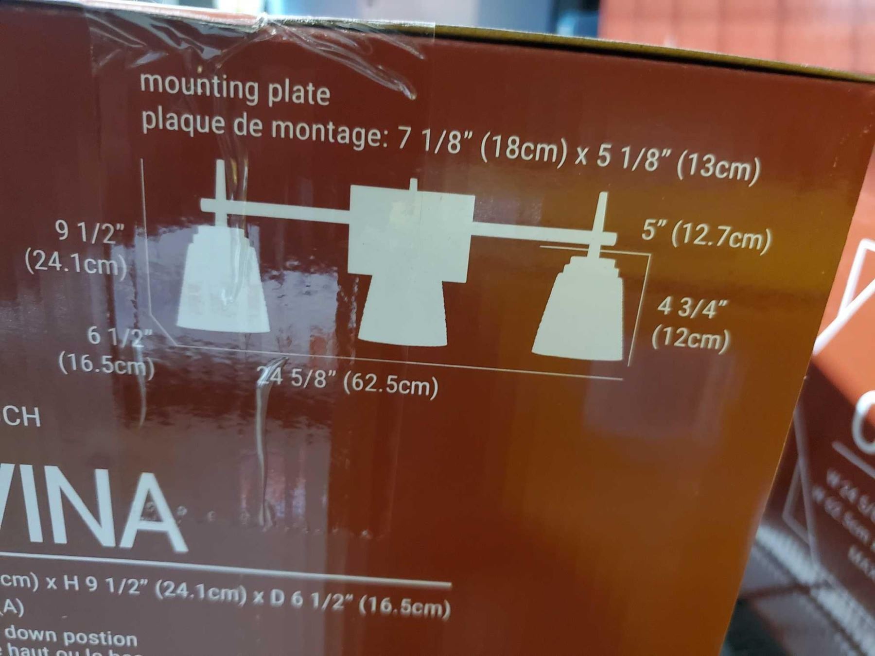 Covina Light w 24 5/8" x H 9 1/2 x D 6 1/2"