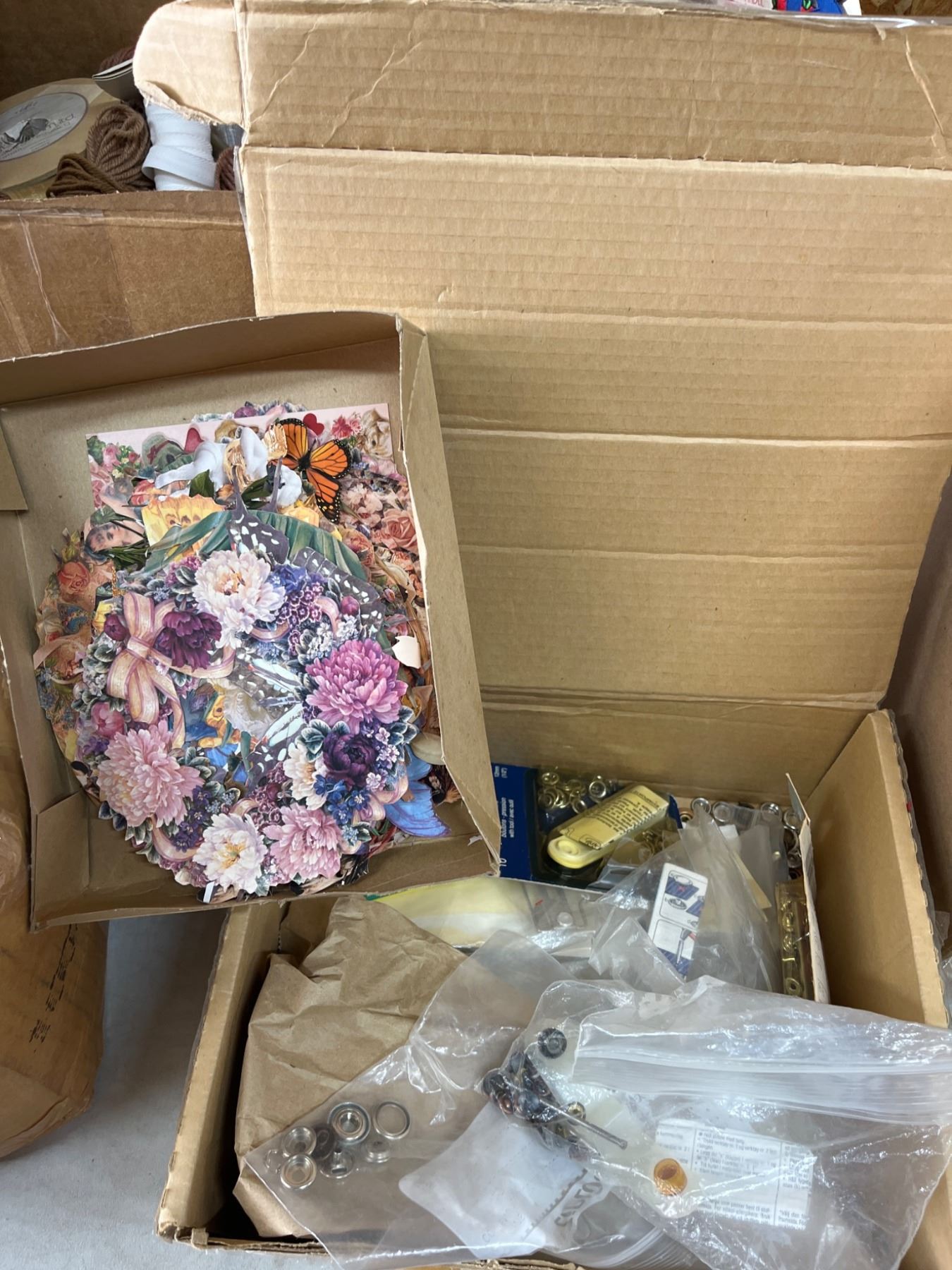 Crafting Supplies Including Die-Cuts, Buttons, and Ribbons