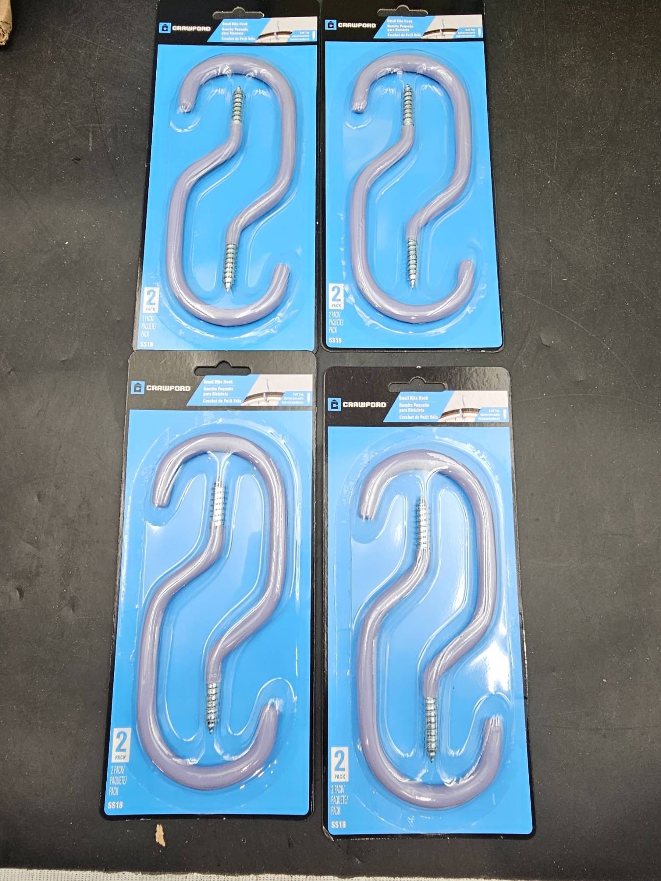 Crawford SS18 Small Bike Hooks, Self-Tap, Lot of 8 Hooks
