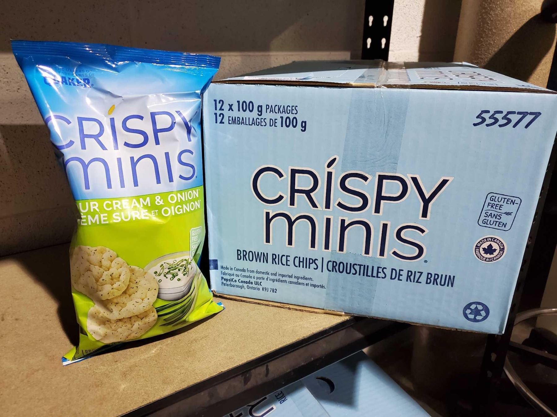 Crispy Minis Brown Rice Chips- Sour Cream & Onion (12 x 100g)