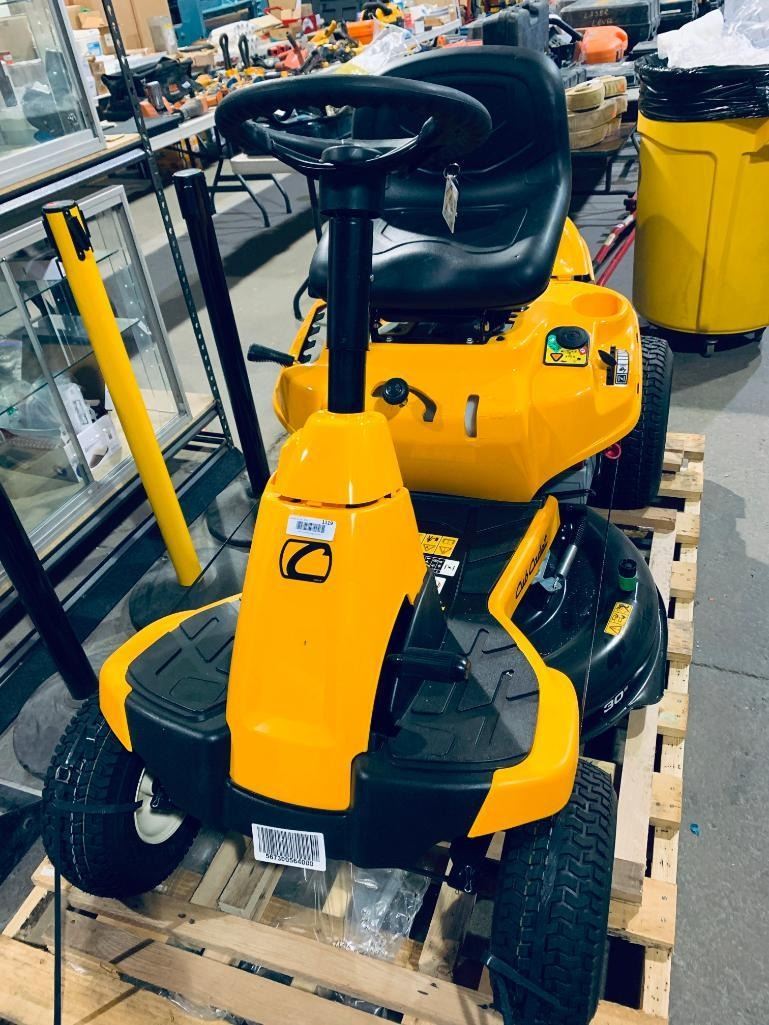 Cub Cadet Ride on Lawn Mower with 30 inch deck, 382cc, electric start. NEW IN CRATE - small crack on back panel includes accessories and manuals