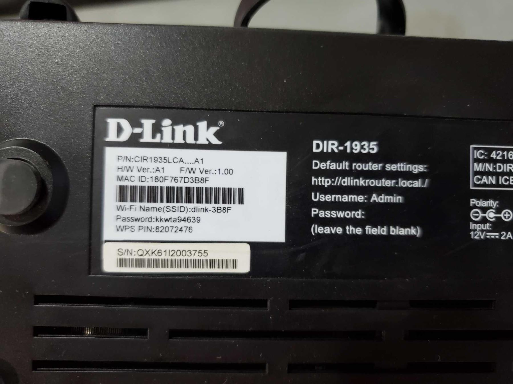 D-Link AC1900 High-Power Wi-Fi Gigabit Dual-Band Router DIR-1935 - OUT OF BOX - SOLD AS IS