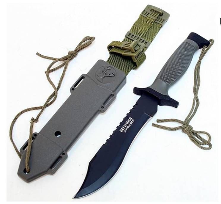 DEFENDER XTREME 12″ Survival Bowie Knife #5208, 7″ High Carbon Steel Blade, Silver, Reusable, Adults, Outdoor, Fixed, Vertical
