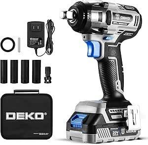 DEKOPRO 20V Cordless Impact Wrench with Brushless Motor, 3 Speed Modes, Self-Stop Function, LED Lights, Ergonomic Handle, Lithium Battery and Charger