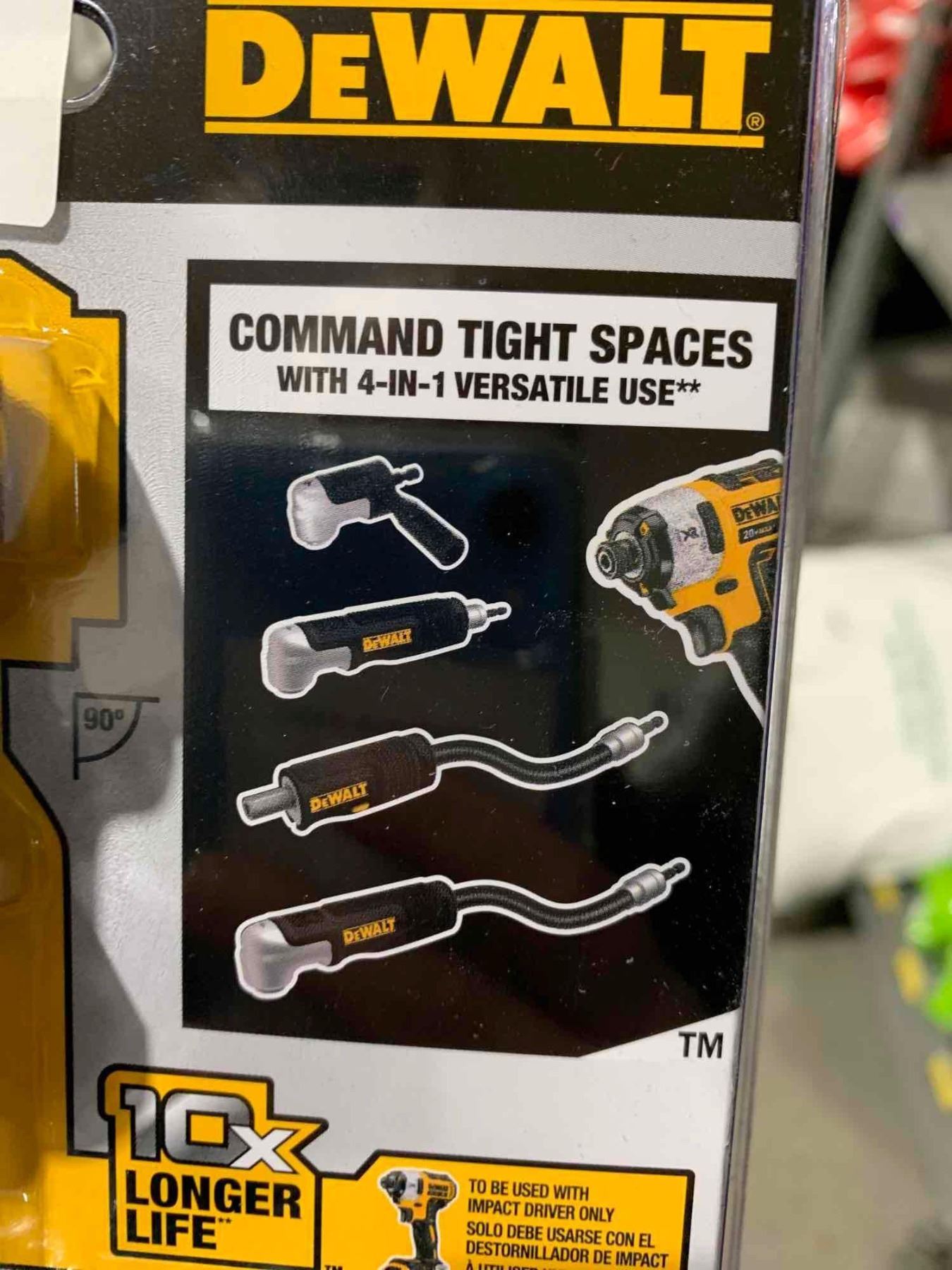 DEWALT Right Angle Drill Adaptor, FlexTorq, 4-in-1 System, Compact, Straight Flexible Shaft, 12-Inch