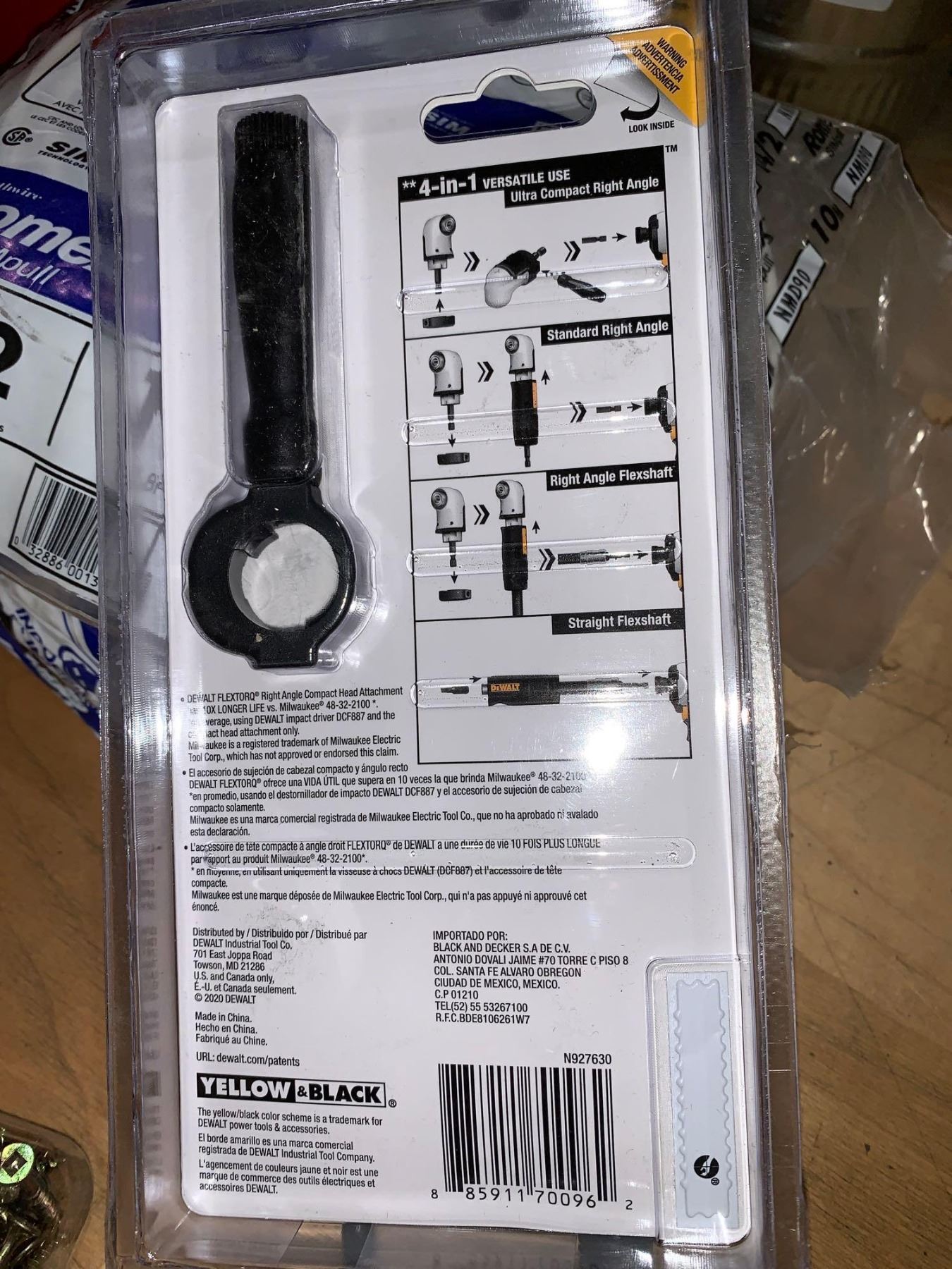 DEWALT Right Angle Drill Adaptor, FlexTorq, 4-in-1 System, Compact, Straight Flexible Shaft, 12-Inch