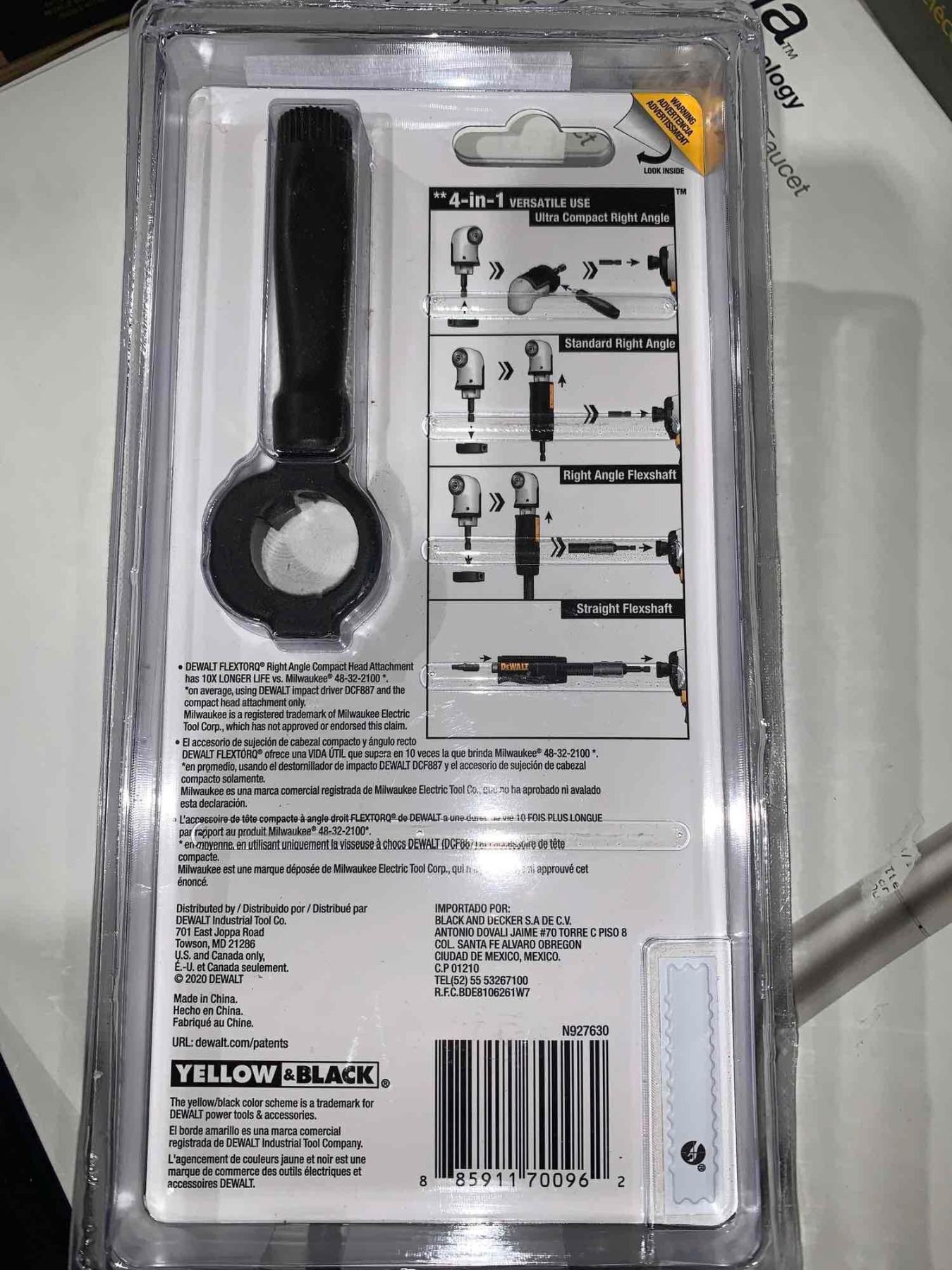 DEWALT Right Angle Drill Adaptor, FlexTorq, 4-in-1 System, Compact, Straight Flexible Shaft, 12-Inch