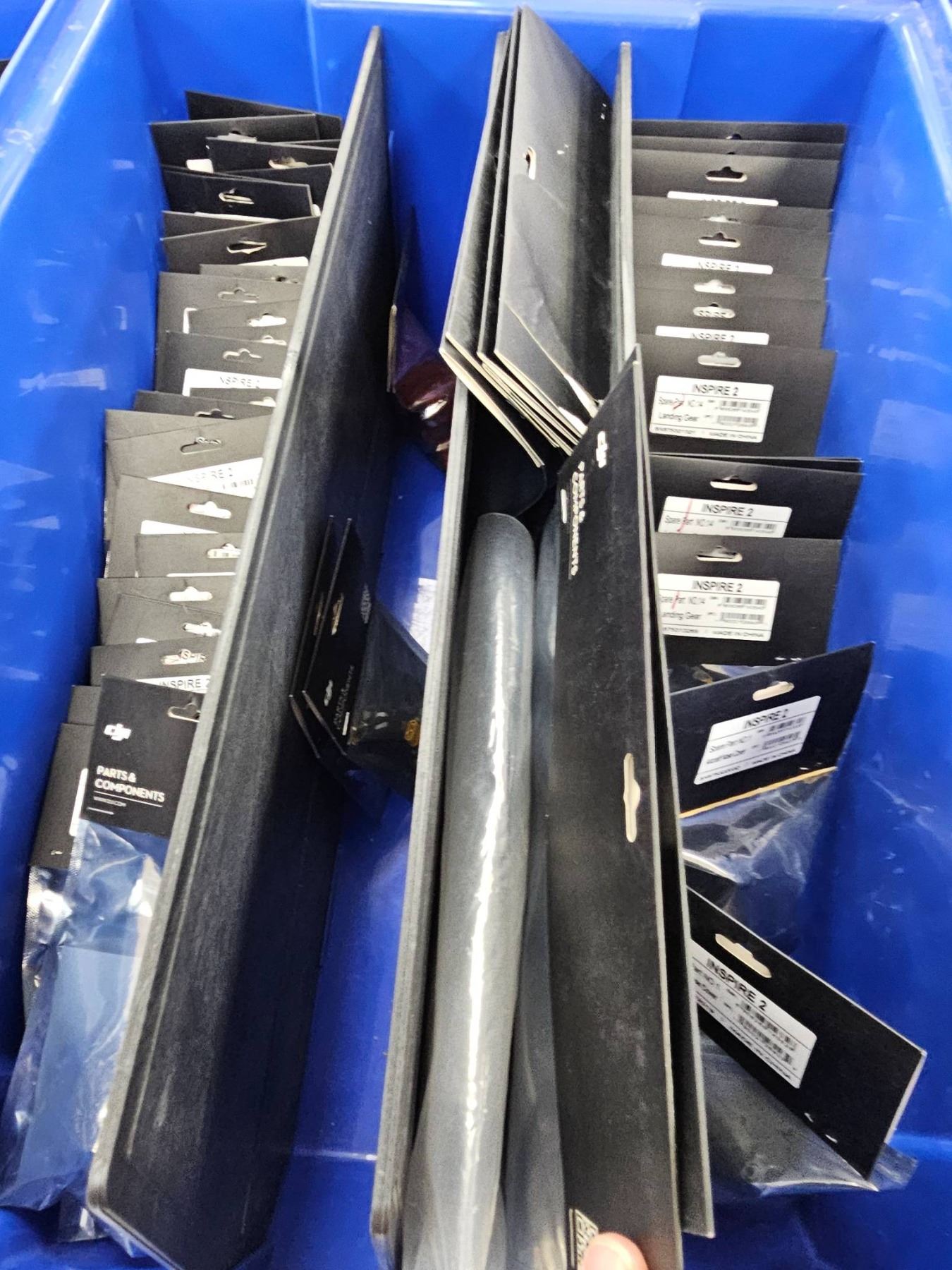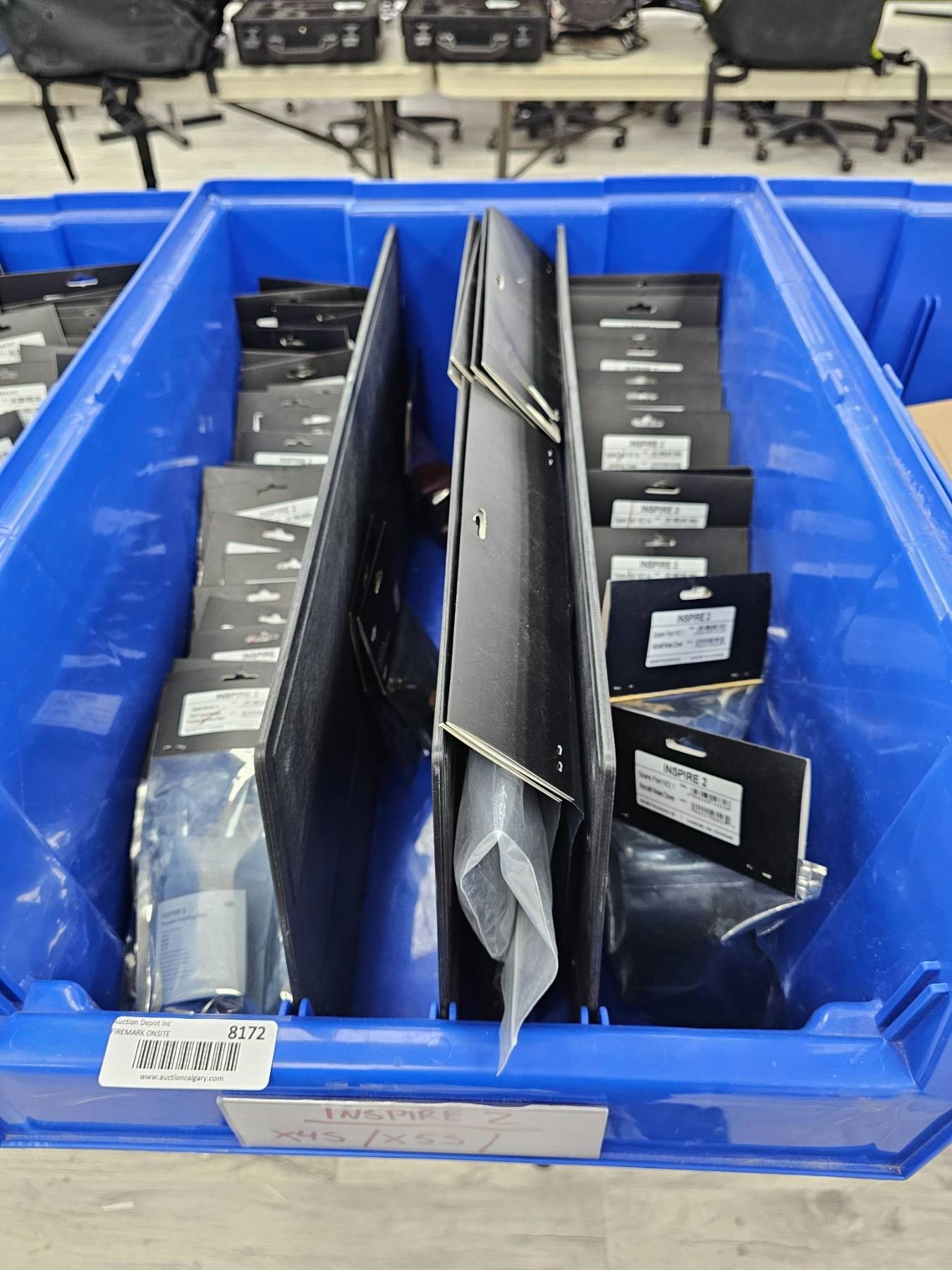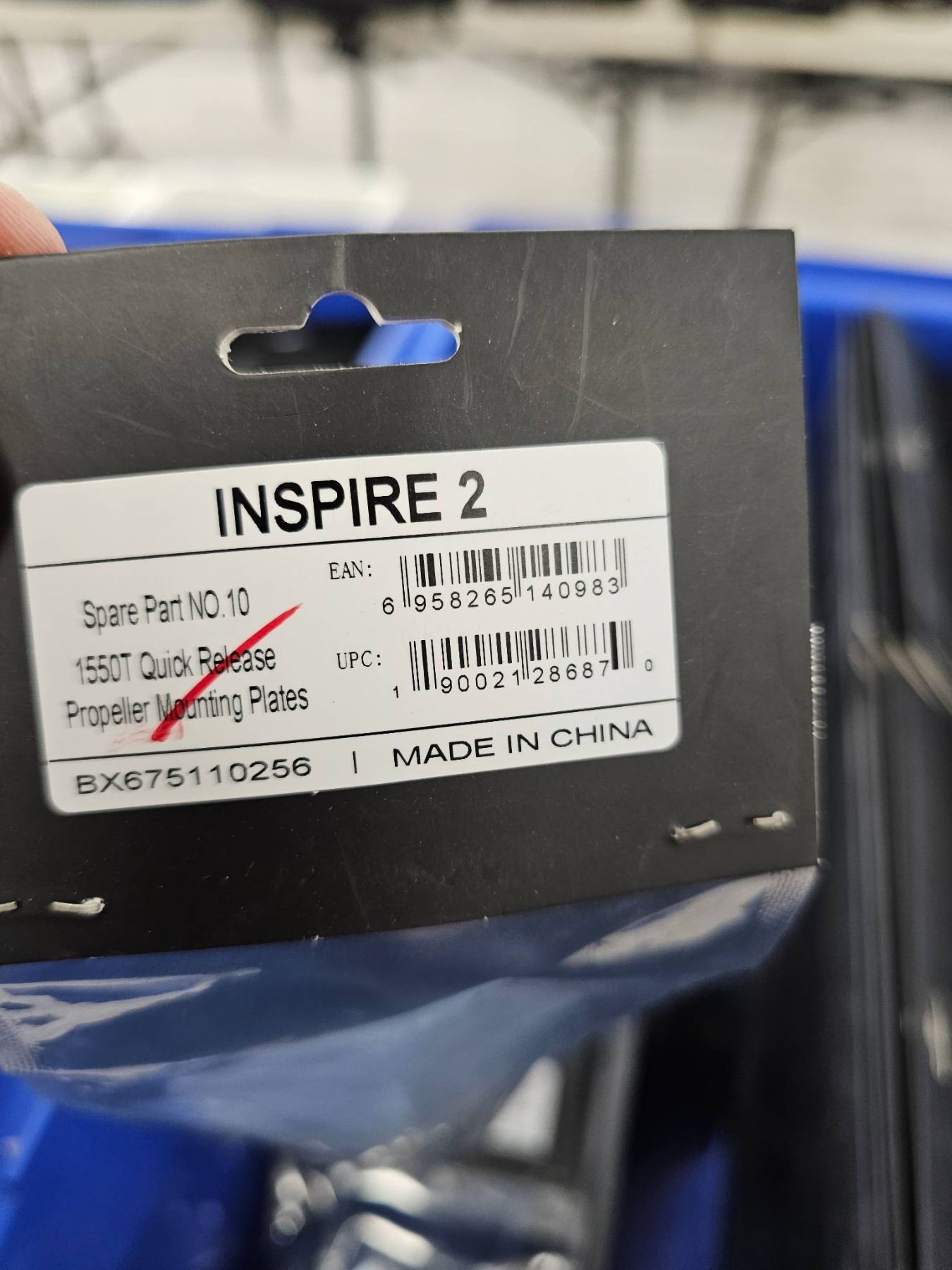 This lot includes multiple DJI Inspire 2 Spare Part 10 sets, which consist of Quick Release Propeller Mounting Plates. The item code is 45507, and the UPC is 6958265145898. These are compatible with the DJI Inspire 2 drone and were made in China. Sold as a bulk lot, various quantities are shown in a blue container.
