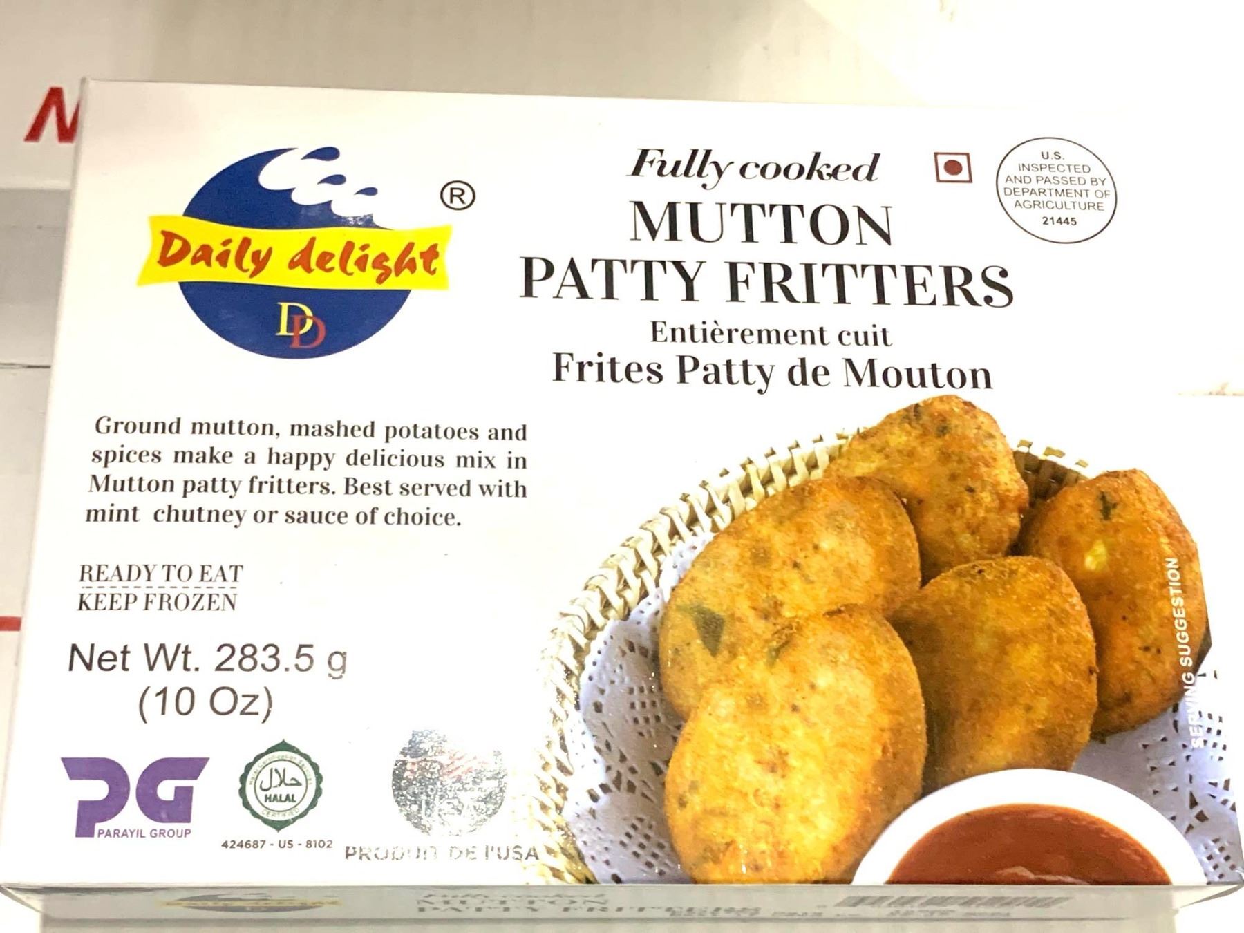 Daily Delight Fully Cooked Mutton Patty Fritters Case lot of 12 x 283g