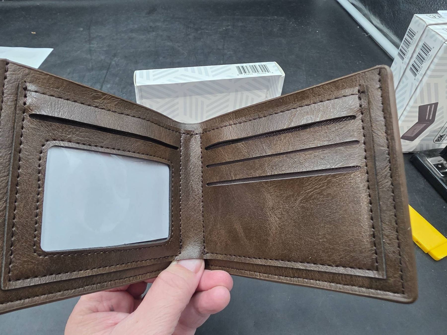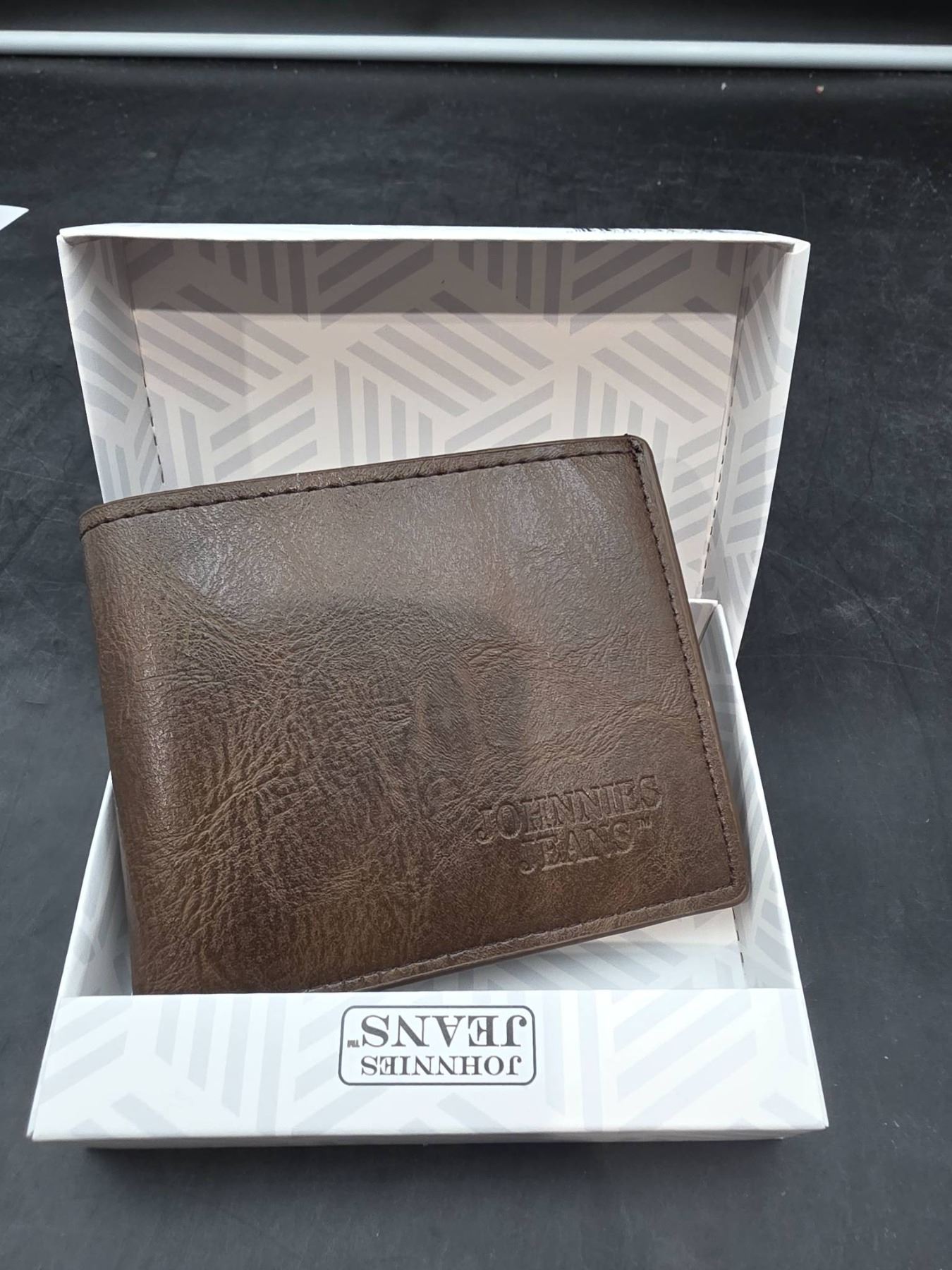 Dark Brown Leather Bi-Fold Wallet by Jonnies Jeans with Card Slots and ID Window