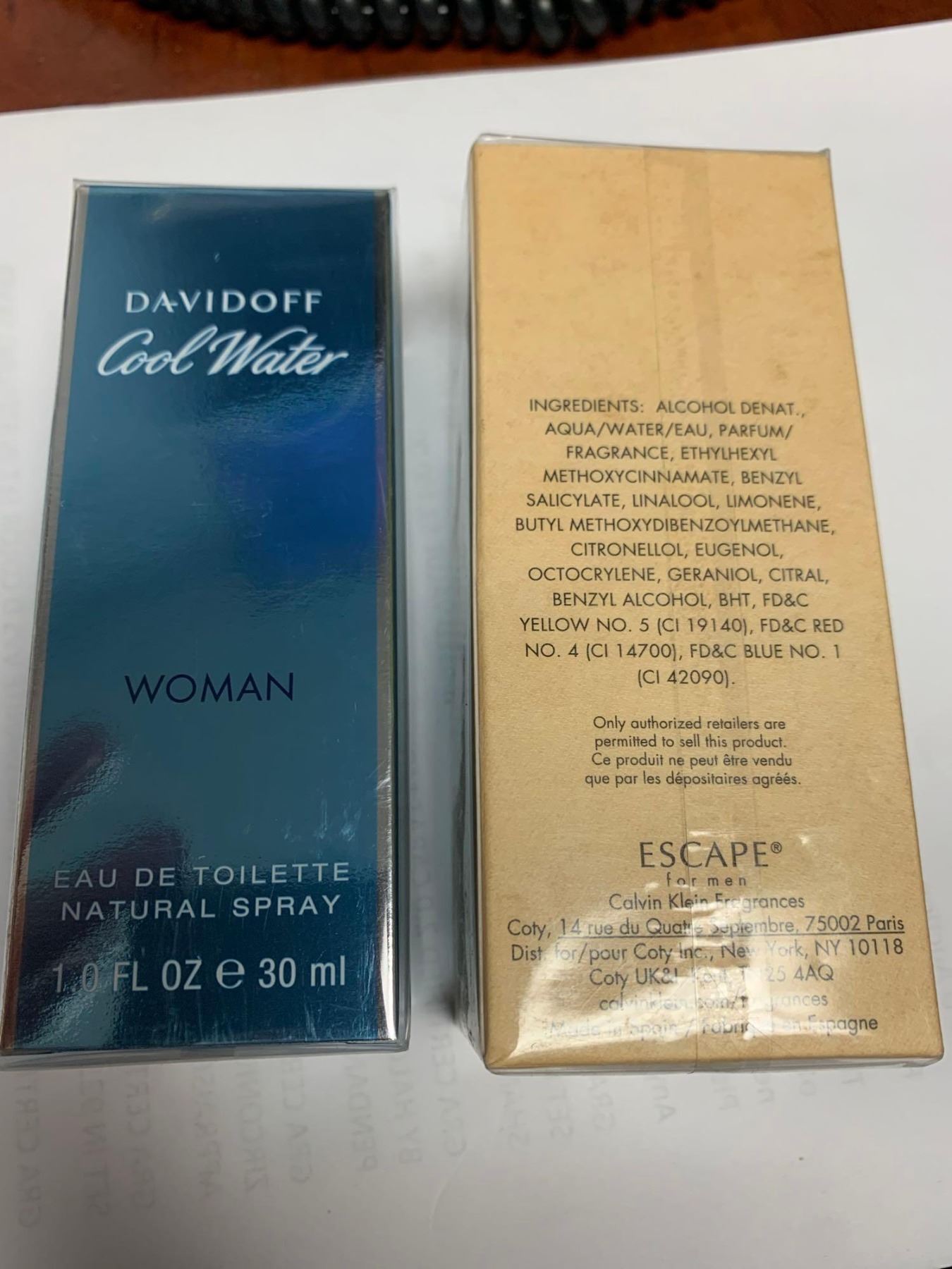 Davidoff Cool waters 30ml & Calvin Klein Escape 50ml new sealed Perfumes Lot of 2