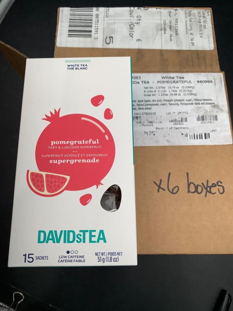 Davidstea Pomgrateful White Tea, 6 Boxes, 15 Bags Each