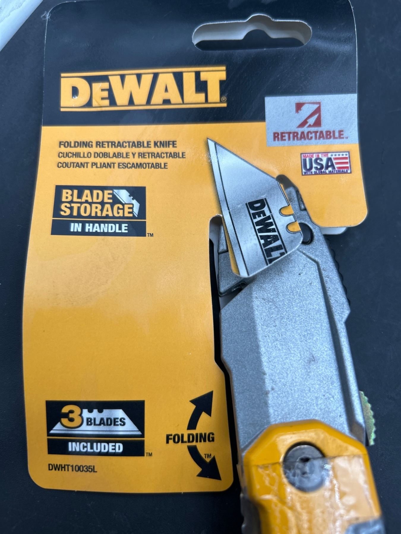 DeWALT DWHT10035L Folding Retractable Utility Knife With Blade Storage
