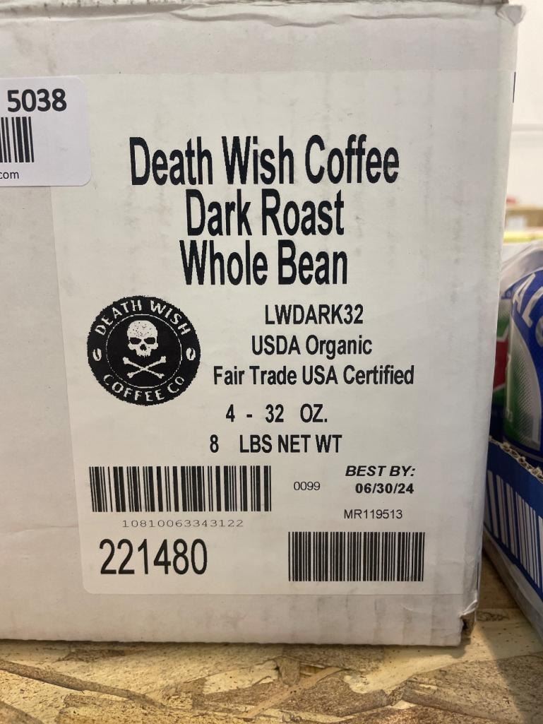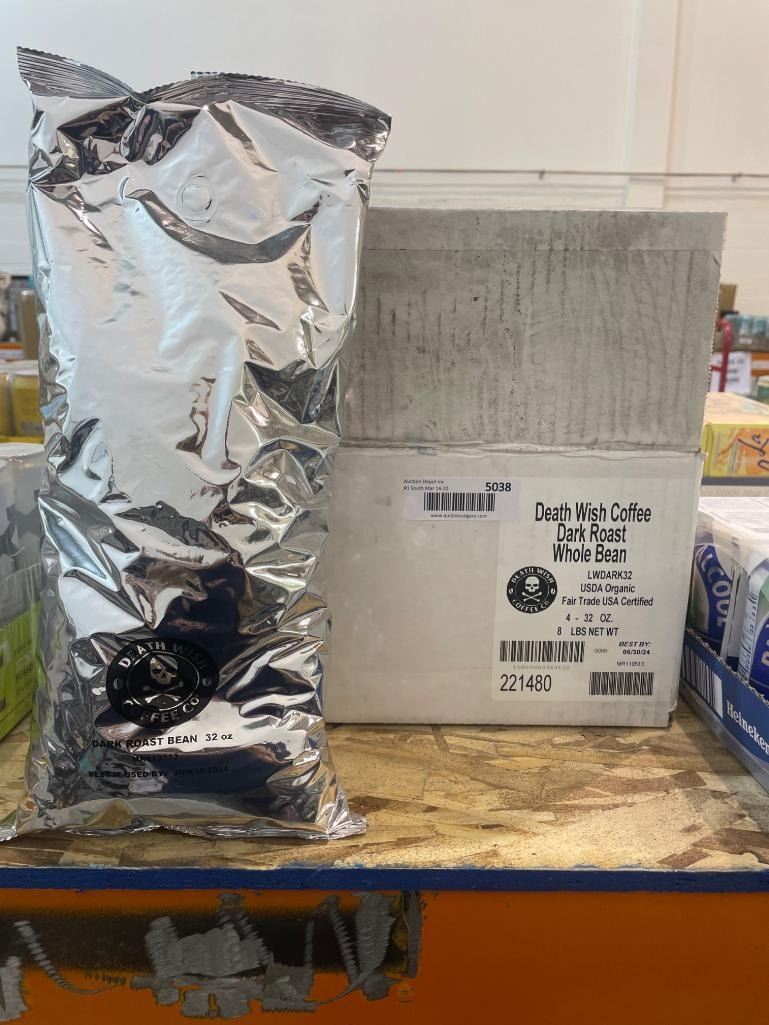 Death Wish Coffee Dark Roast Whole Bean – 4 Bags, 8 lbs Net Weight
