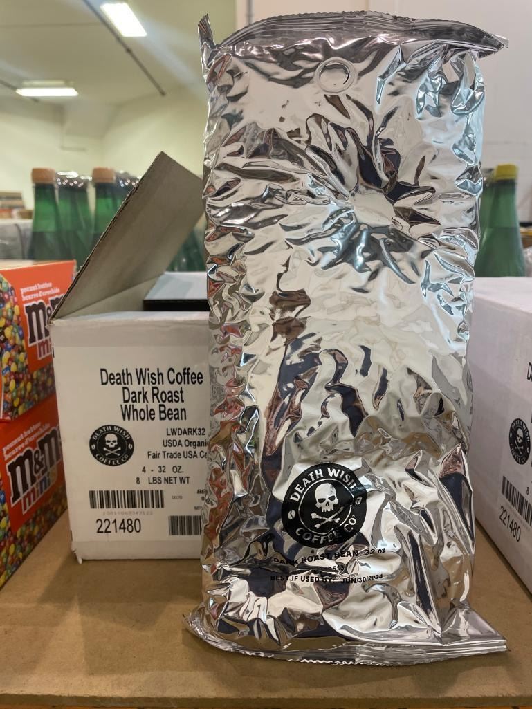 Death Wish Coffee Dark Roast Whole Bean, USDA Organic 4 x 32oz