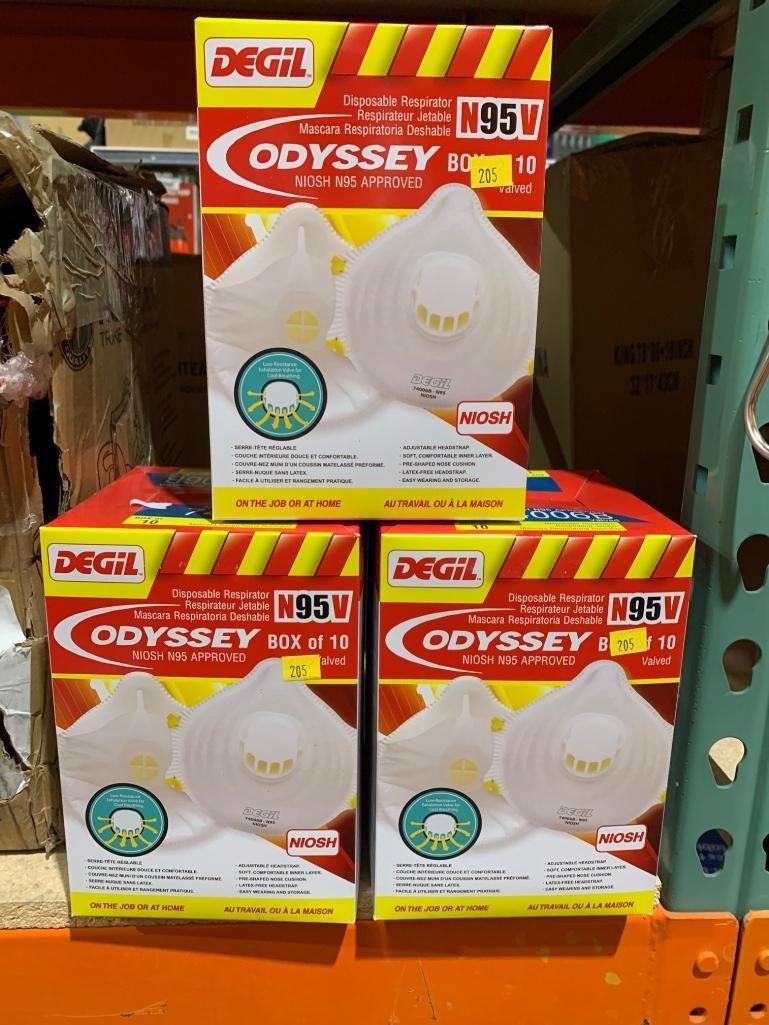 Degil Odyssey N95V Disposable Respirators, Box of 10, NIOSH Approved Lot of 3