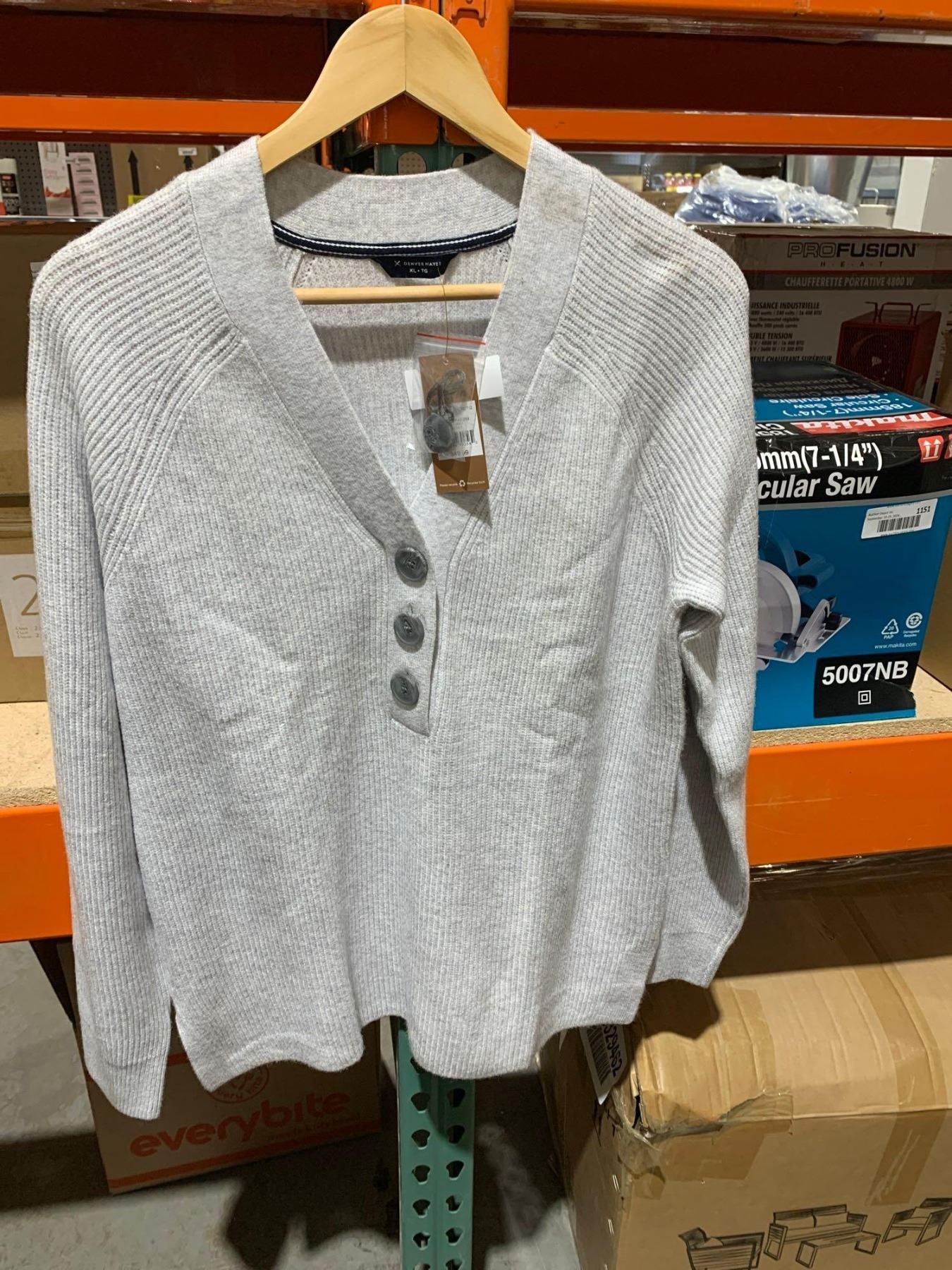 Denver Hayes Ladies Size XL 3 Button Sweater Light Grey