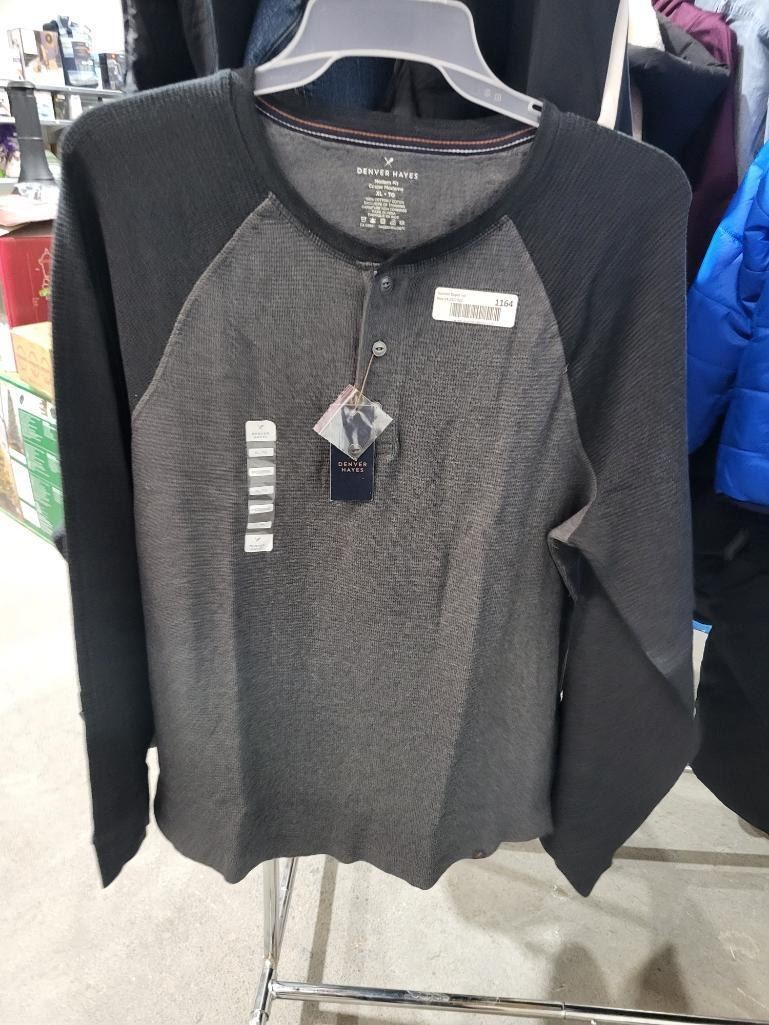 Denver Hayes Mens Grey Heather 3 Button LS Top Size XL