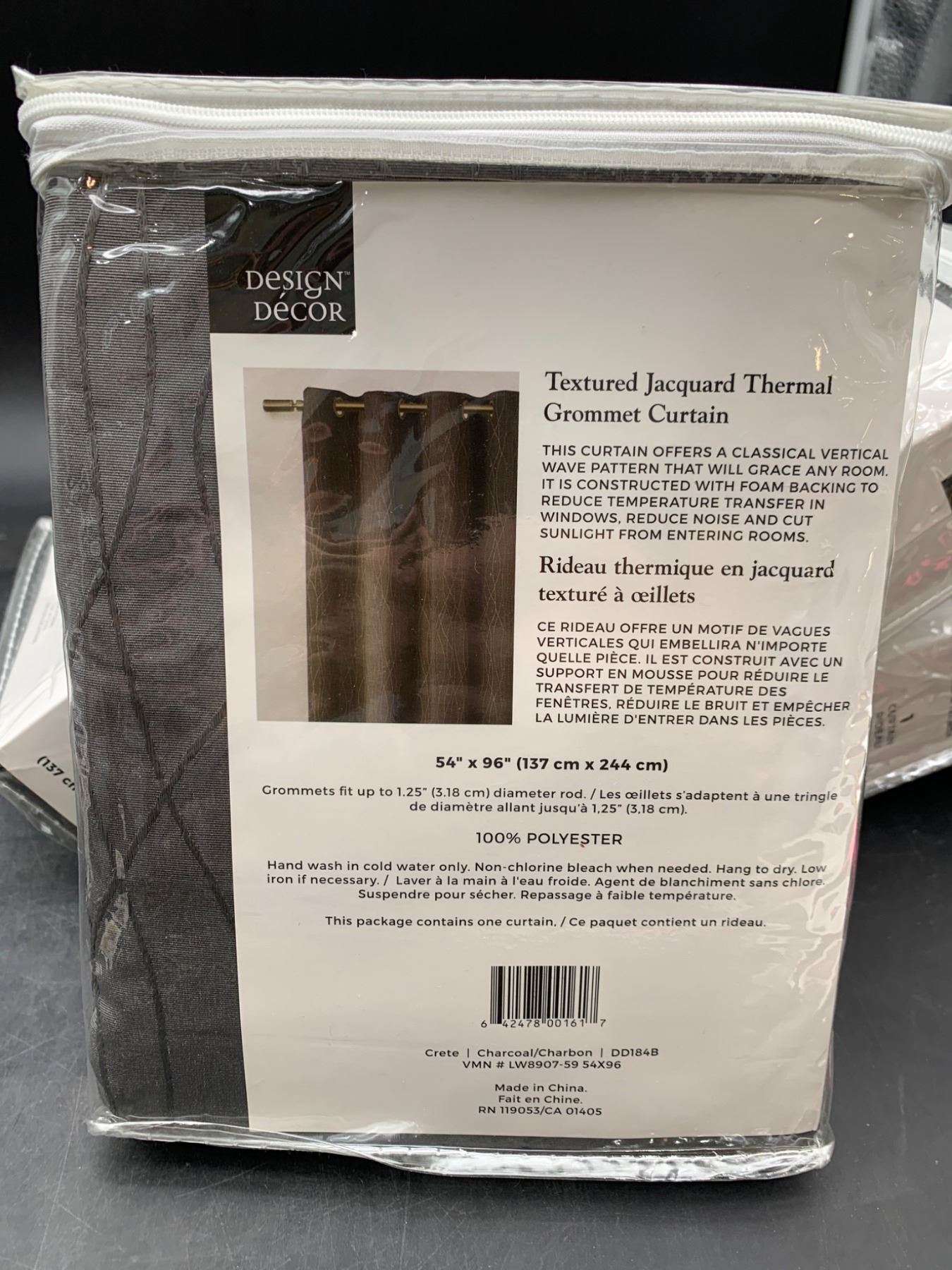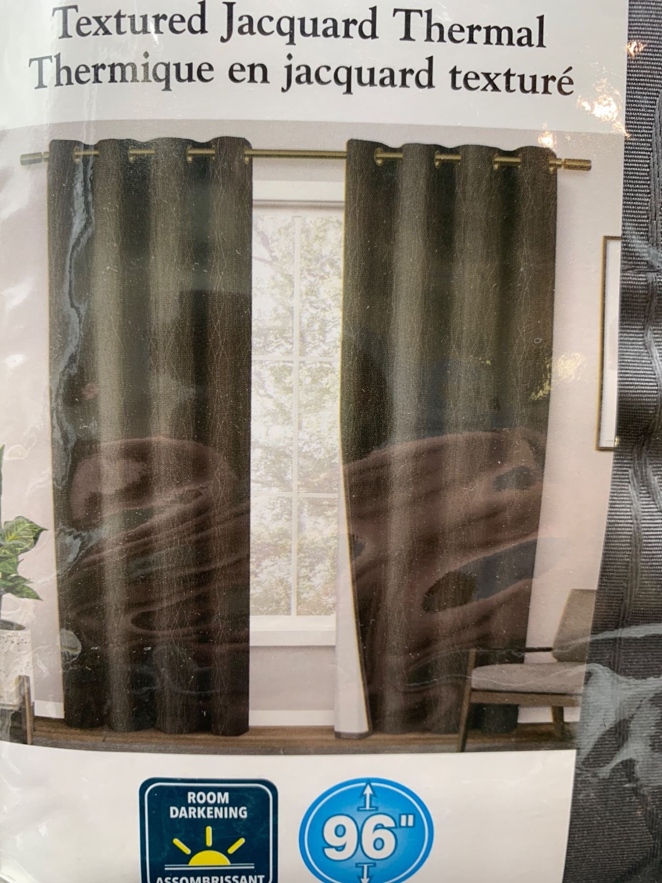 Design Decor Crete Textured Jacquard Thermal Grommet Curtain, 54 x 96 Inches, Charcoal