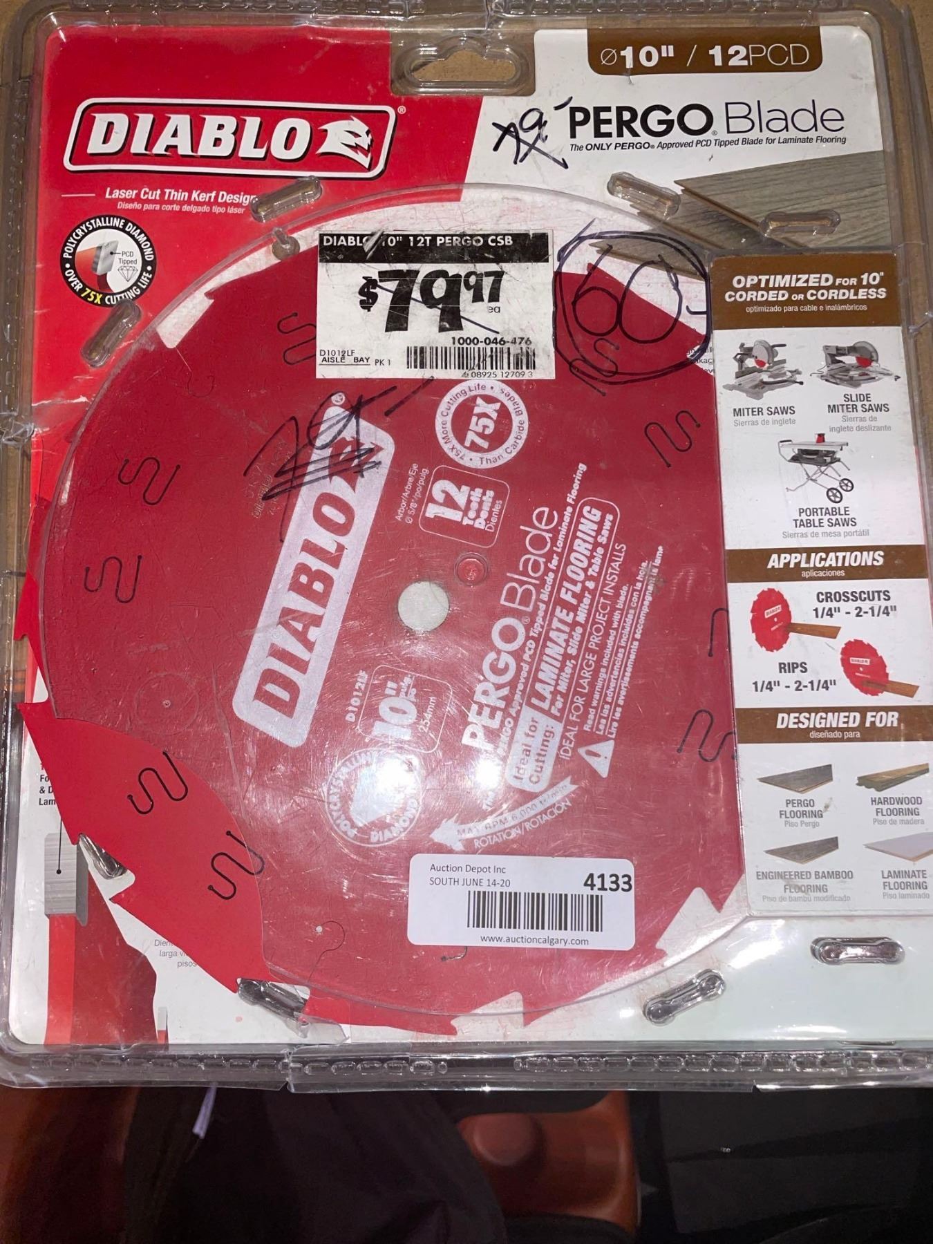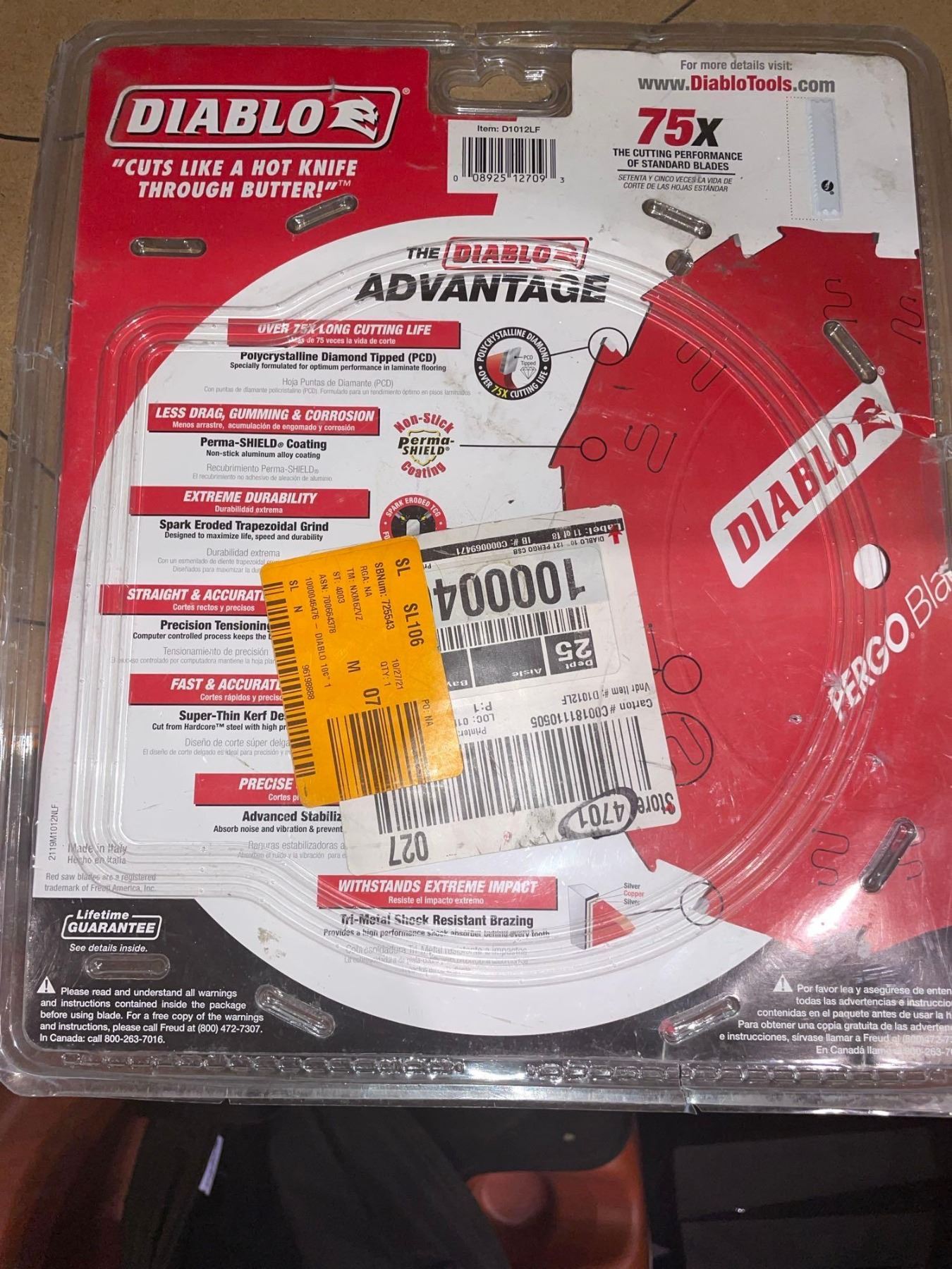 Diablo 10-inch x 12 Tooth Diamond Tipped Miter/Table Saw Blade for Laminate Floor Cutting